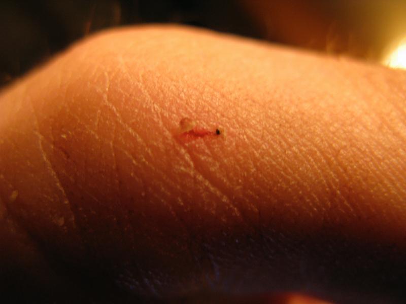I think I got this wound from a rose bush, because that looks like a piece of a rose thorn still stuck in there.