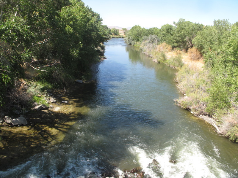 And the people that ran the stand were fun and good people. There was an old white guy who gave me pointers on things to see when riding over the Sierras. I also learned that that same guy had pulled his own tooth out with a Leatherman the day before. Right there at the same table he was sitting at the next day. Wow. I took a picture of Pyramid Lake and then rode off on my merry way after having a giant Indian Taco. The wind was still an issue even after eating delicious Indian Tacos. Man, that wind can just suck my balls. I hate wind so much now. I still stand by my campaign stance on down with hills, but I'm now an even bigger proponent of Down With Wind. Fuck wind. A couple of windy hours later I was passing through a town called Nixon and noticed a river running through town. I was still covered in Playa dust, and decided to go take a dip in that river, because another promise I made to myself was to jump into every lake and river that I could along my way. So I did that. I hid my bike in some bushes by the side of the road and then climbed down to the river and had myself a proper bath in the river there.