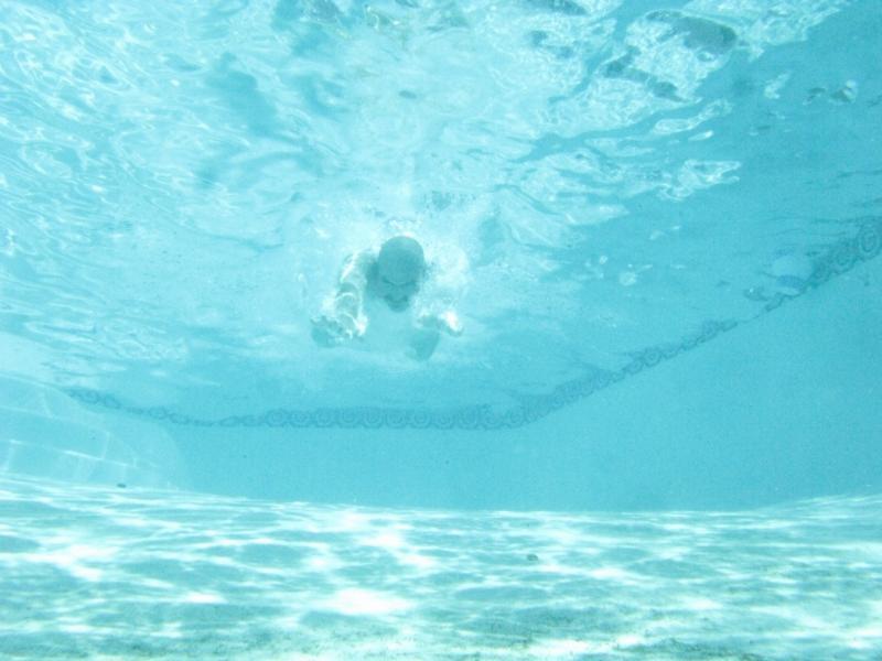 It was not easy and very exhausting to get in and out of the water so many times trying to get a good shot. Swimming down to the bottom, placing the camera just right under a rock (making sure not to turn the camera off while doing so), then hitting the timer, then hauling ass to the surface, jumping out, running to the other side of the pool and then diving in right on cue. It was a tough day. But since nobody else planned my day, it was up to me, and this is the kind of inane crap I come up with on my own.