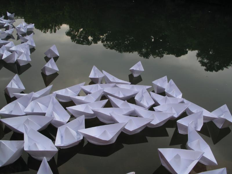(But I have to ask...were you at all tempted to write messages or anything on the paper before folding the boats? It would have been poetic to think of all the words, mixing together, drifting around, and then sinking to the bottom.)