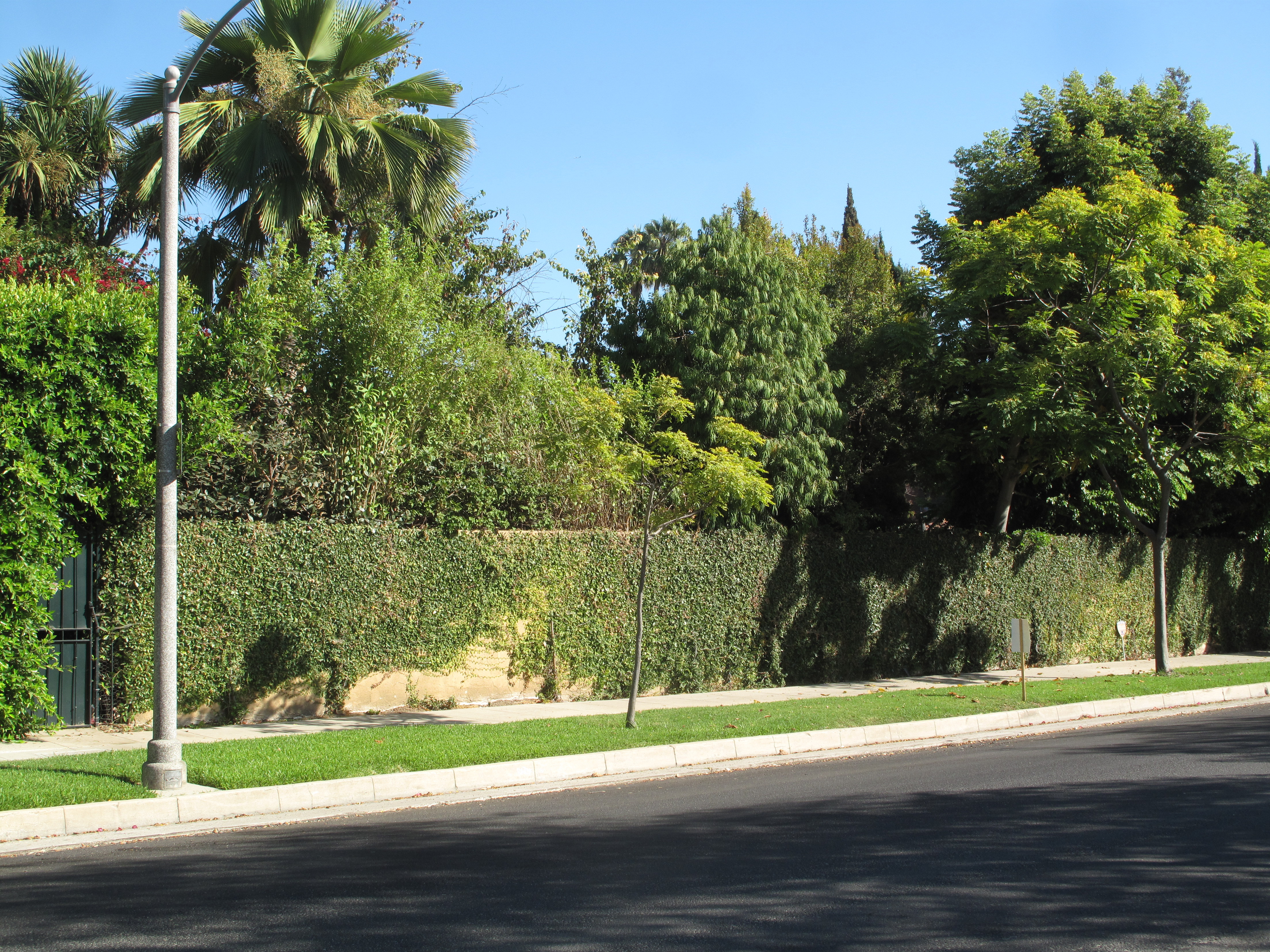 Across the street from the yard covered in vines was a gate. Guh. When I first read this dérive I had assumed that I would be well out of town before I got to this part, and that the gate I would have to jump would be to a park or something. I did not expect it was going to be somebody's back yard. On private property. In Beverly Hills. Guh.