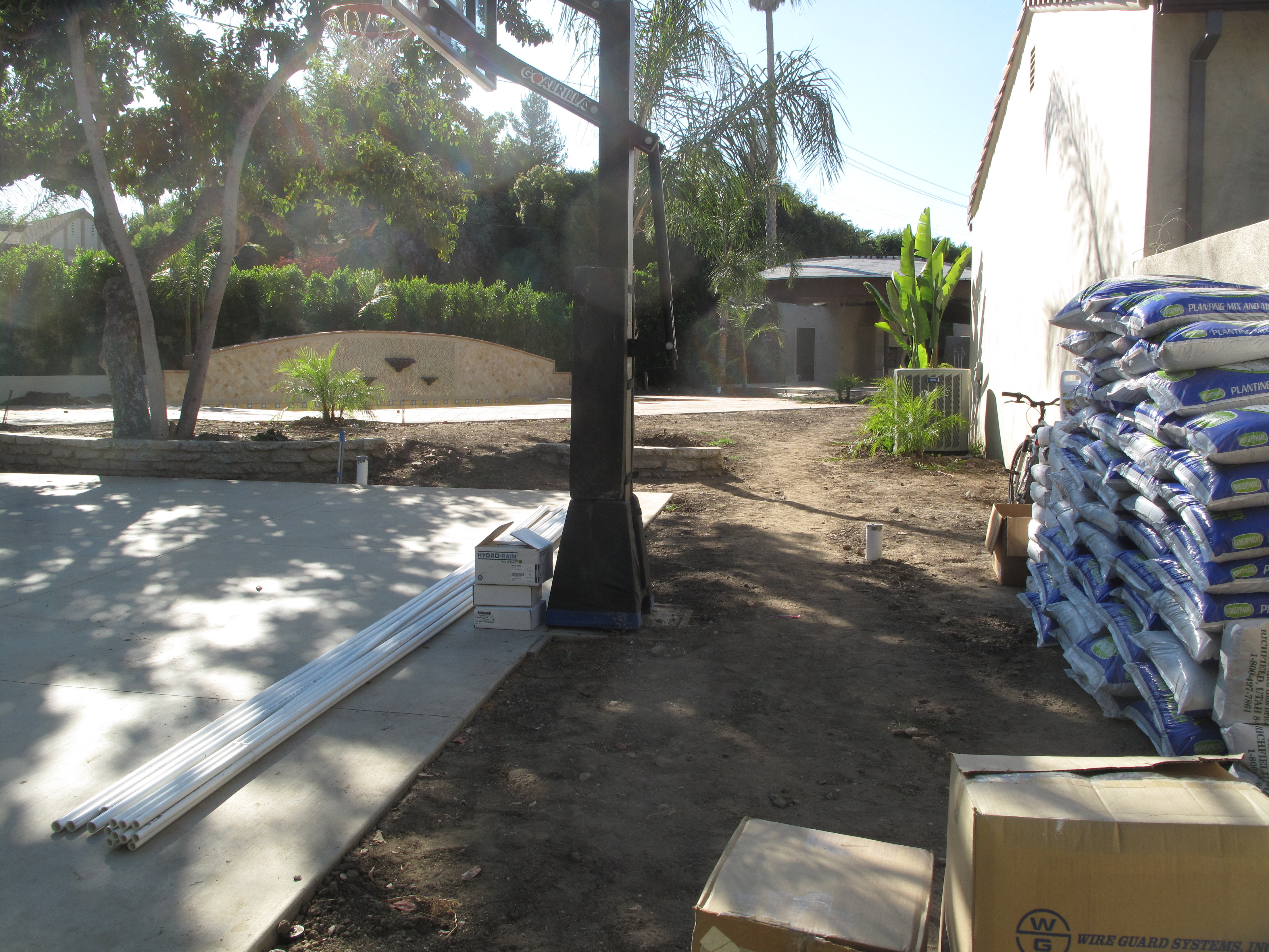 Once I jumped the gate, I discovered a yard under construction. Up there around the corner was kinda uphill, although most of this whole yard was pretty flat.