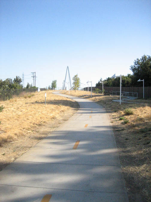 i saw the uphill leading to the park first. about halfway up, i noticed that there was a football game happening to the left. presumably the Homestead Hornets vs. the Moscow Bears. there was also a sign that said "please keep off the new landscaping," which is how i learned about the chic new trend in landscaping towards dry yellow scrub. this path leads to a newly build bike bridge over 280, which i haven't taken before! yay bike bridge!