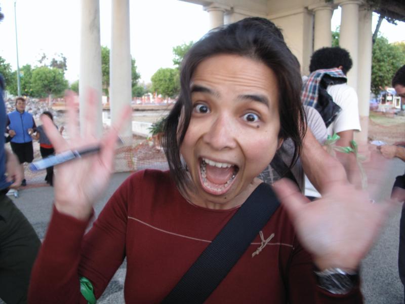 The first runners to arrive were given the charge of finding suitable "fishing poles." These proved to be sticks with string tied to them. Some runners were asked to tell fishermen's tales, and finally, as the checkpoint became very busy, many runners were just asked to submit their souls to the camera and forego the telling of tales or any other form of delay.