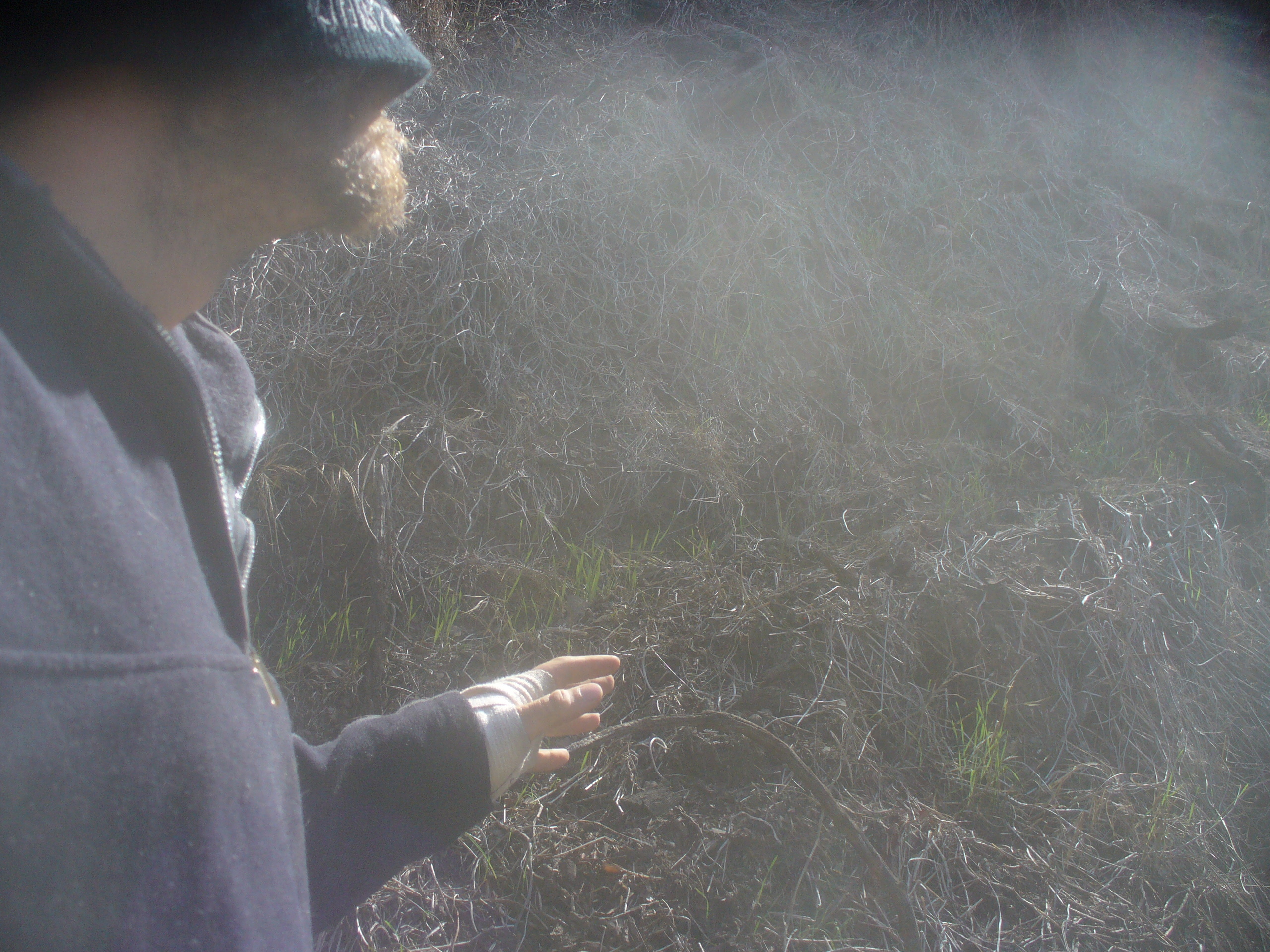 These little twisted mostly dead trees were everywhere apparently, and I kept running into them. It sounds lame, but when you get caught in a little tree, there appears to be no way out when you can't see, because everywhere you turn, there's more tree or brambly awful little bushes. I got poked in the eye a few times and was glad to be wearing a mask. I always just kept pushing on, moving up, trying to go under and sometimes over any obstacle I encountered. I would just break through branches like a big dumb animal, and I hate doing that. i really enjoy being stealthy, and just being a big dumb wrecking machine sucked, but I could see no other way (pun intended).