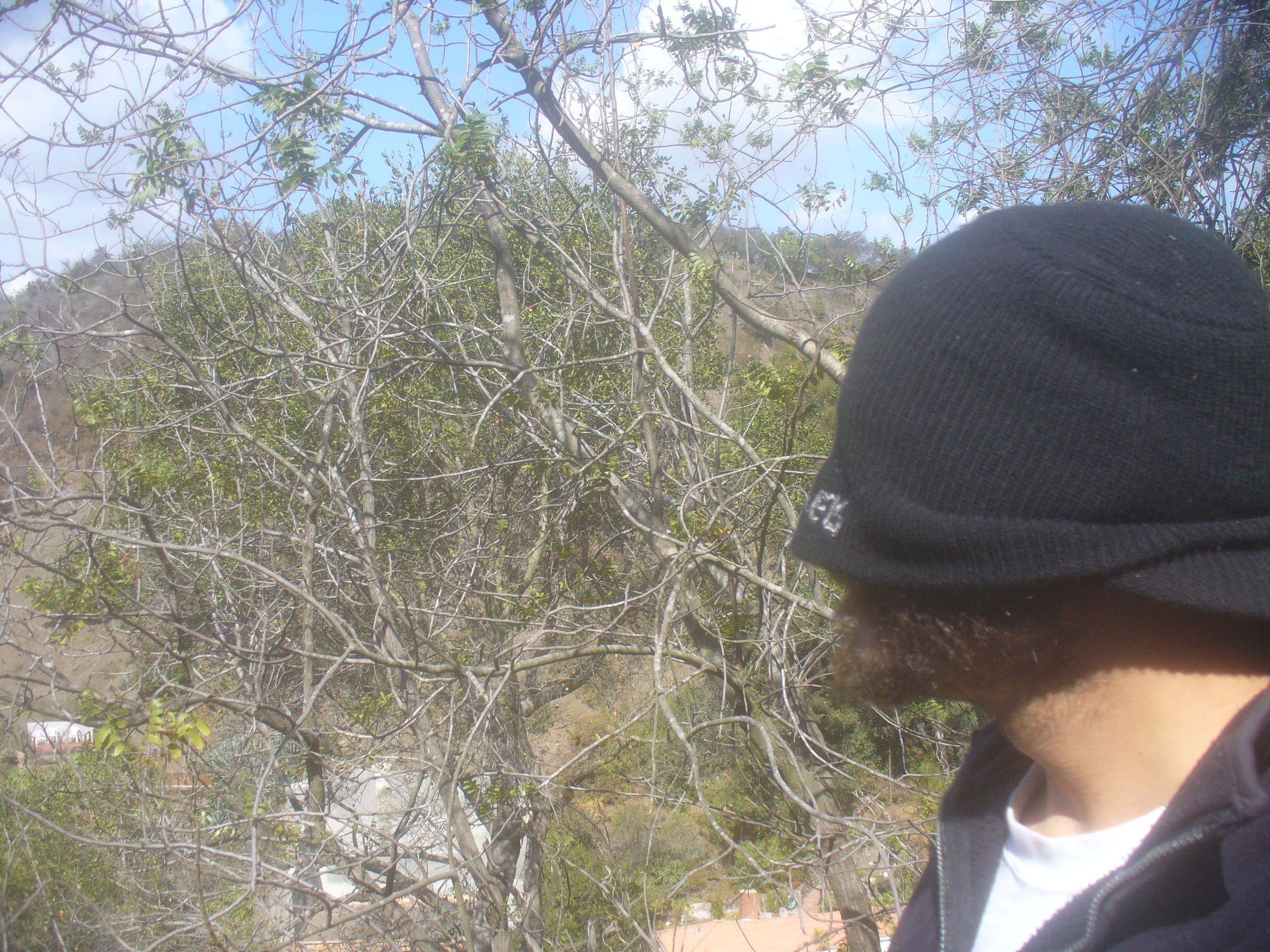 Once I had the blindfold I went off. I went off a bit haphazardly, because I forgot to bring my water bottle, which I had set on a table next to my glasses. But with the blindfold on, I just didn't see it. Oh well. First I had to get past my uncle's cactus garden, but I was familiar with it at least, so I was able to get past that with no bodily harm. I had to scale a big wall and walk across the top of it, which wasn't too hard, because I'd done it before, but still, a little scary to walk along the top of a wall with an eight foot drop without being able to see. I took it very slowly. The rest of the assent would not be as simple as walking atop a wall and avoiding a cactus garden. At first it was OK, because there was a lot of green plants that were easy to grab and pull myself up with. But soon it turned to dusty dirt and the slipping started. I climbed most of the way up on my hands and knees. My back began to hurt after about ten minutes. And it was about the ten minute mark that I started encountering the trees.
