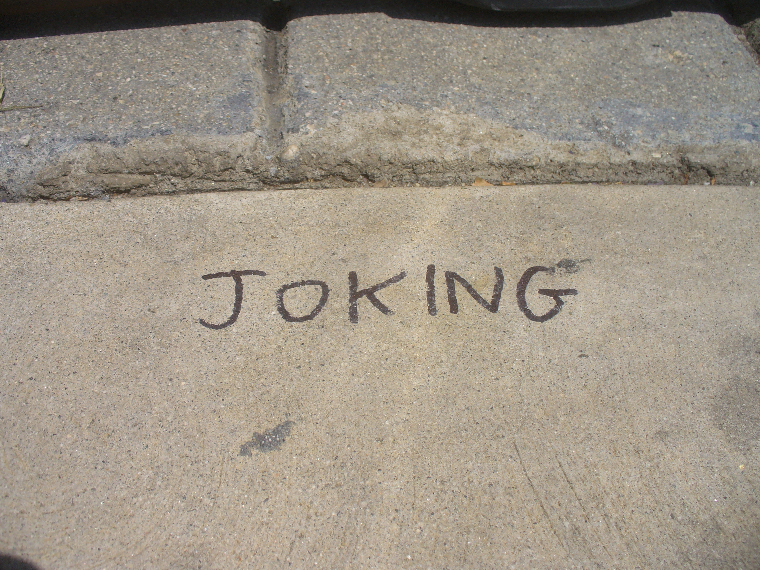 I decide to write Joking right in front of this guard shack, right under those happy cheerful balloons.