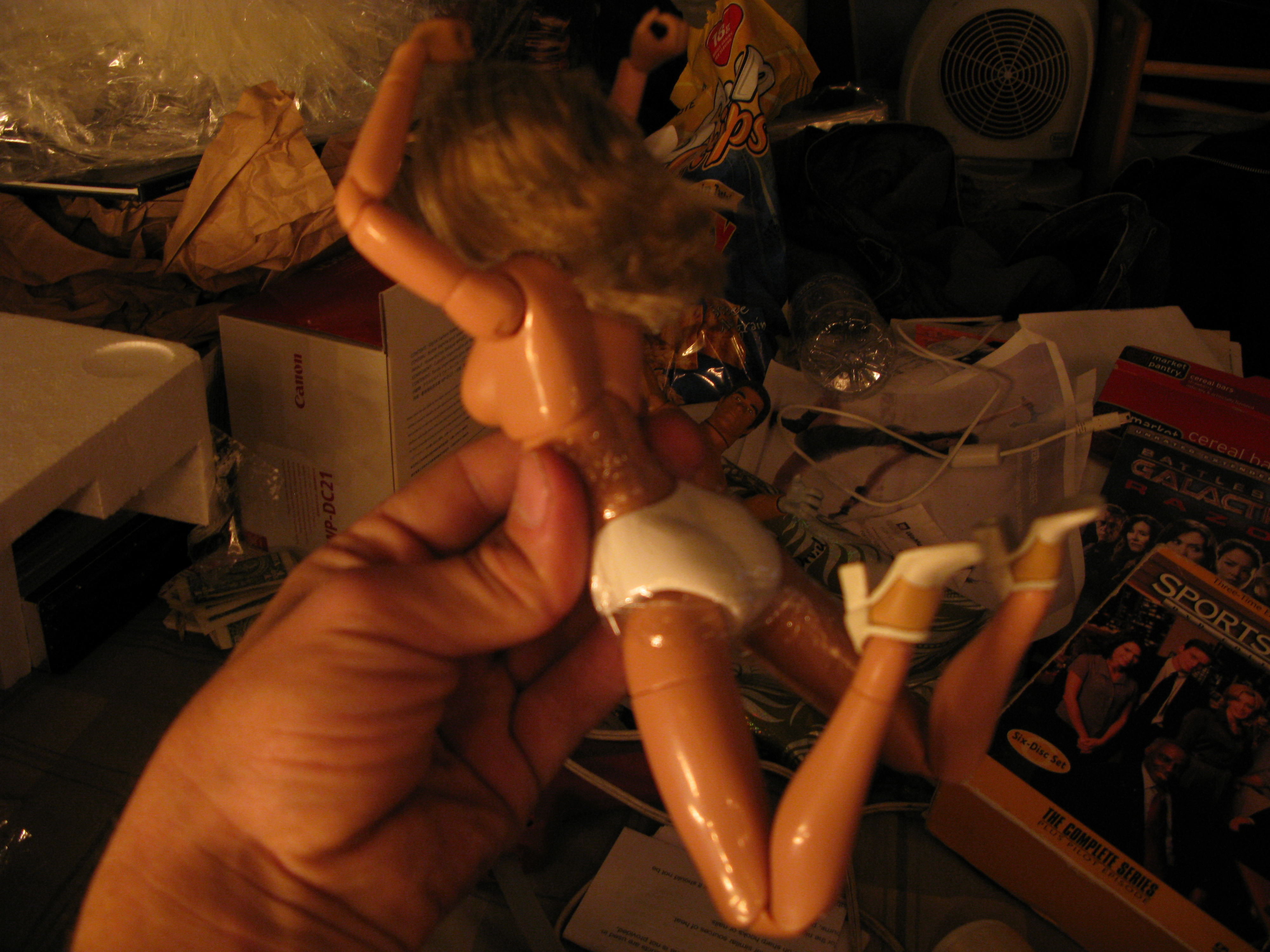 I used a Buffy the Vampire Slayer toy as my Bex stand in when I made her portrait. Here I am getting her in position.