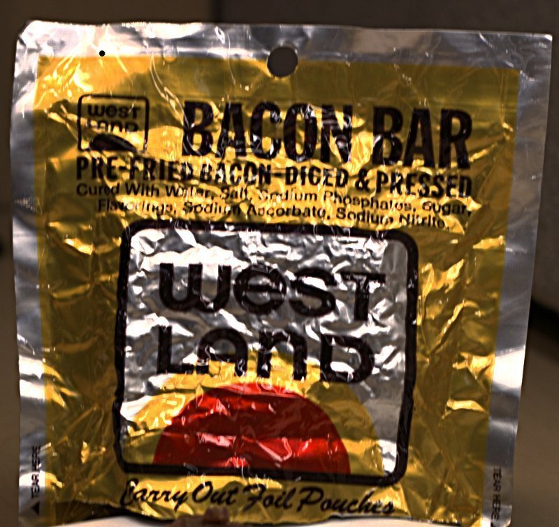 Digging around a bit online, I was unable to find any reference to the Bacon Bar. What's more, the company that produced it - Westland Foods - appears only in patent and court documents from prior to 1985, when they were bought out by Schreiber Foods. It looks like the stamp on the back of the package, "61186," which I'd assumed was some sort of batch ID, is actually a date. All of which lead me to suspect that the product was likely to be around 24 years old.