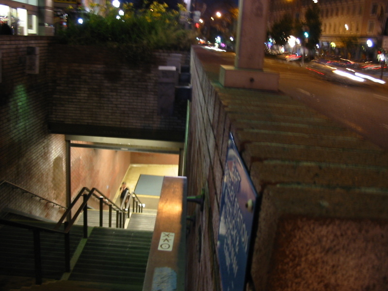 Finally, I made it into the Berkeley BART station. As I was working out the orientation of the stairs, an angry man started shouting at me from the far side of the stairwell. As far as I can make out, he spotted me as a blind impostor and was offended by it and decided to rat me out to whoever else was on the sidewalk. I quickly headed down the stairs and into the cool, safe BART station.