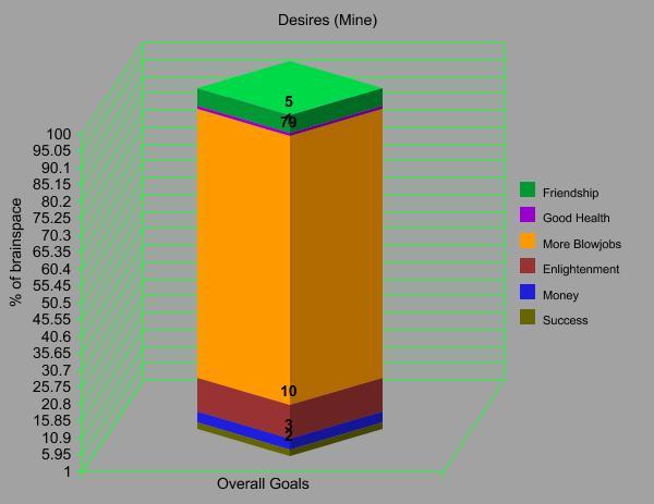 First off, I should point out that I'm not an artistic person. My hands don't do what my brain tells them. That said, I'm going to use computers for any non-public craft. It's what I do. This graph very clearly represents my desires, though they do fluctuate about +/-5%.