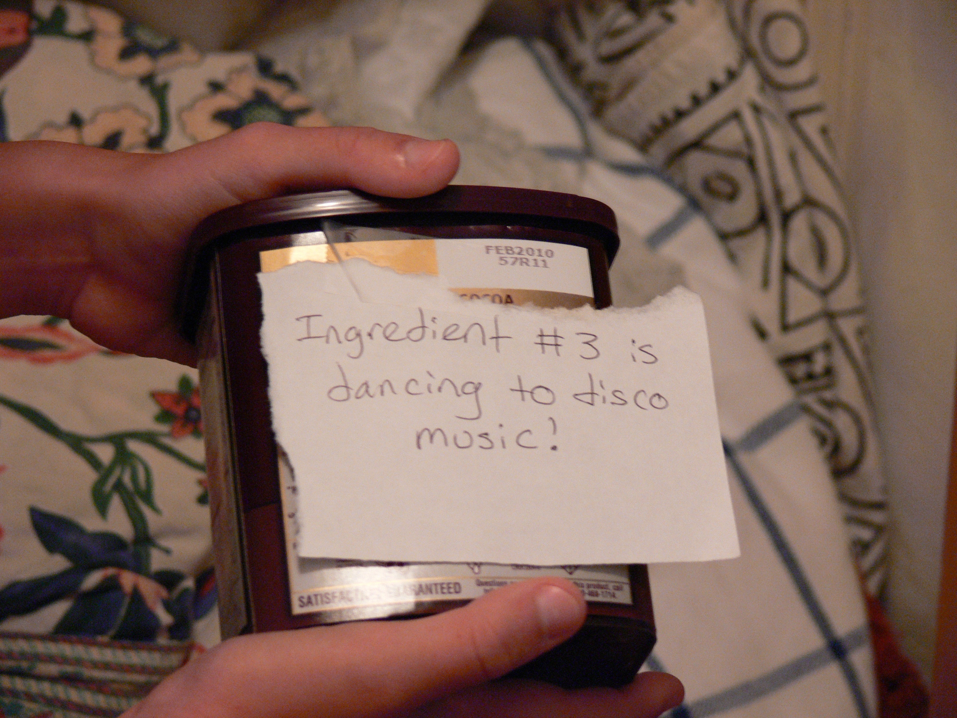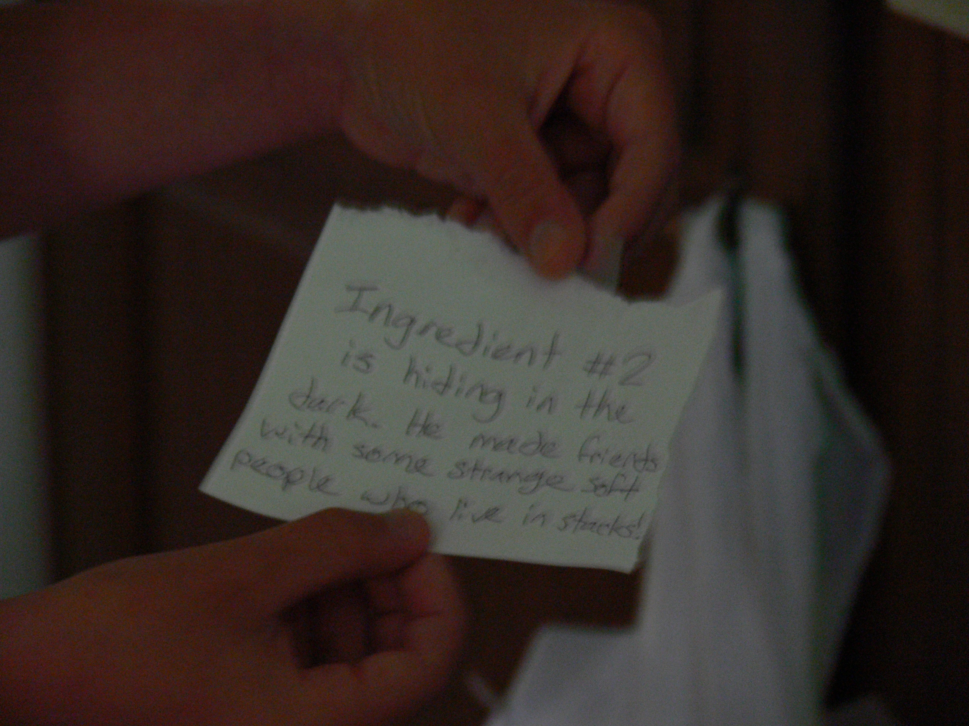 I started fiddling around and I decided it would be pretty cool if I hid the ingredients and had my family follow them to find the cake. But literally as I began hiding them, I realized that it would be a lot easier if they had some sort of riddle to help them find the next one.
