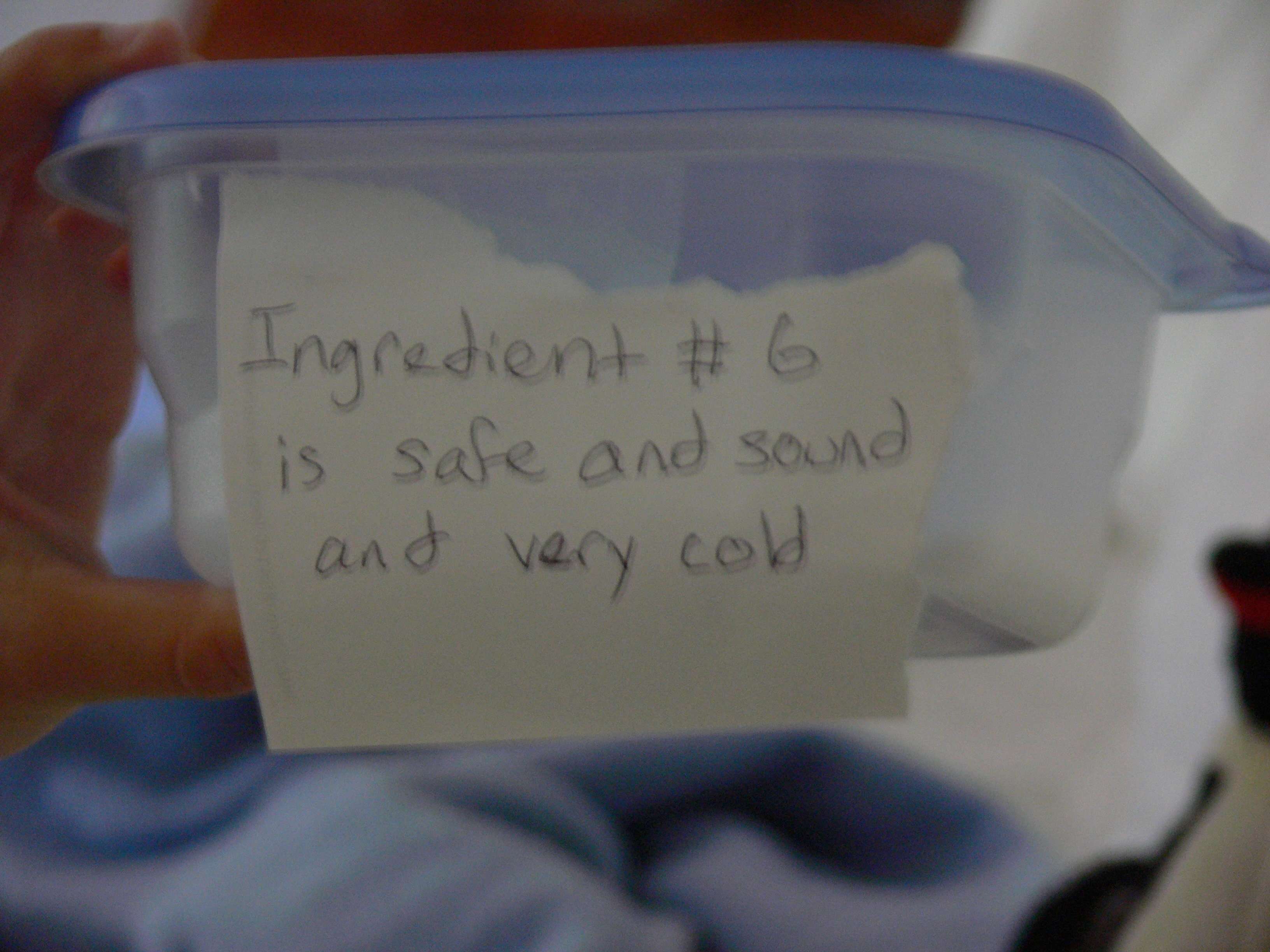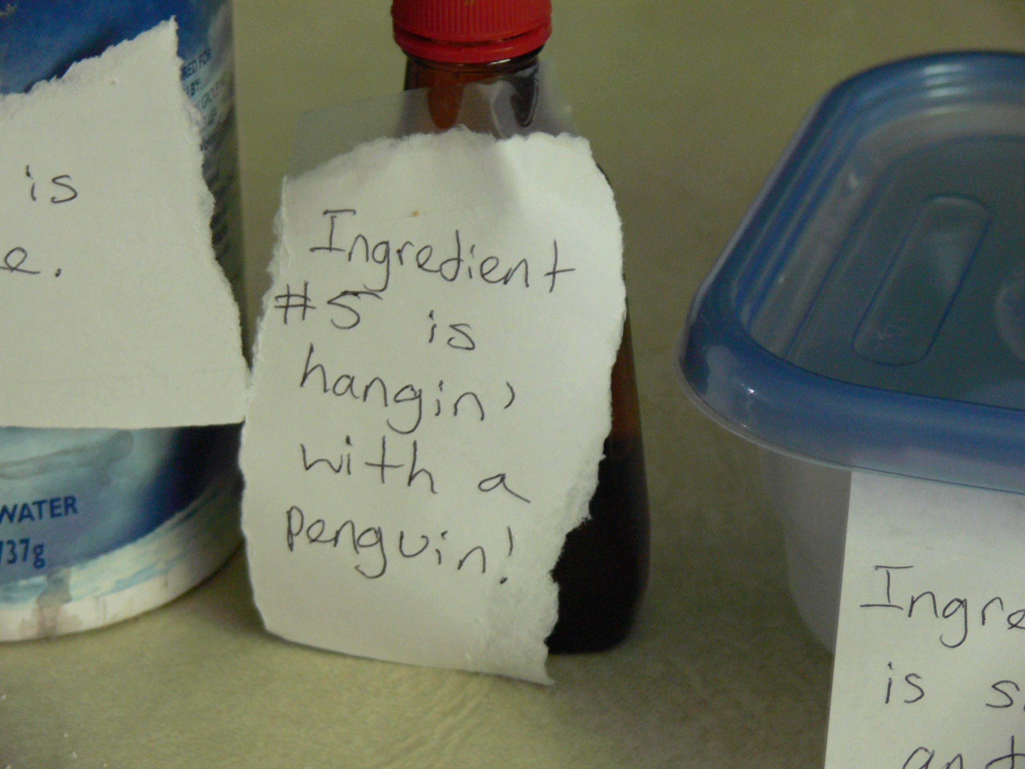 When she went looking for the ingredients, she found the flour first. Here's the clue I stuck to its back.
