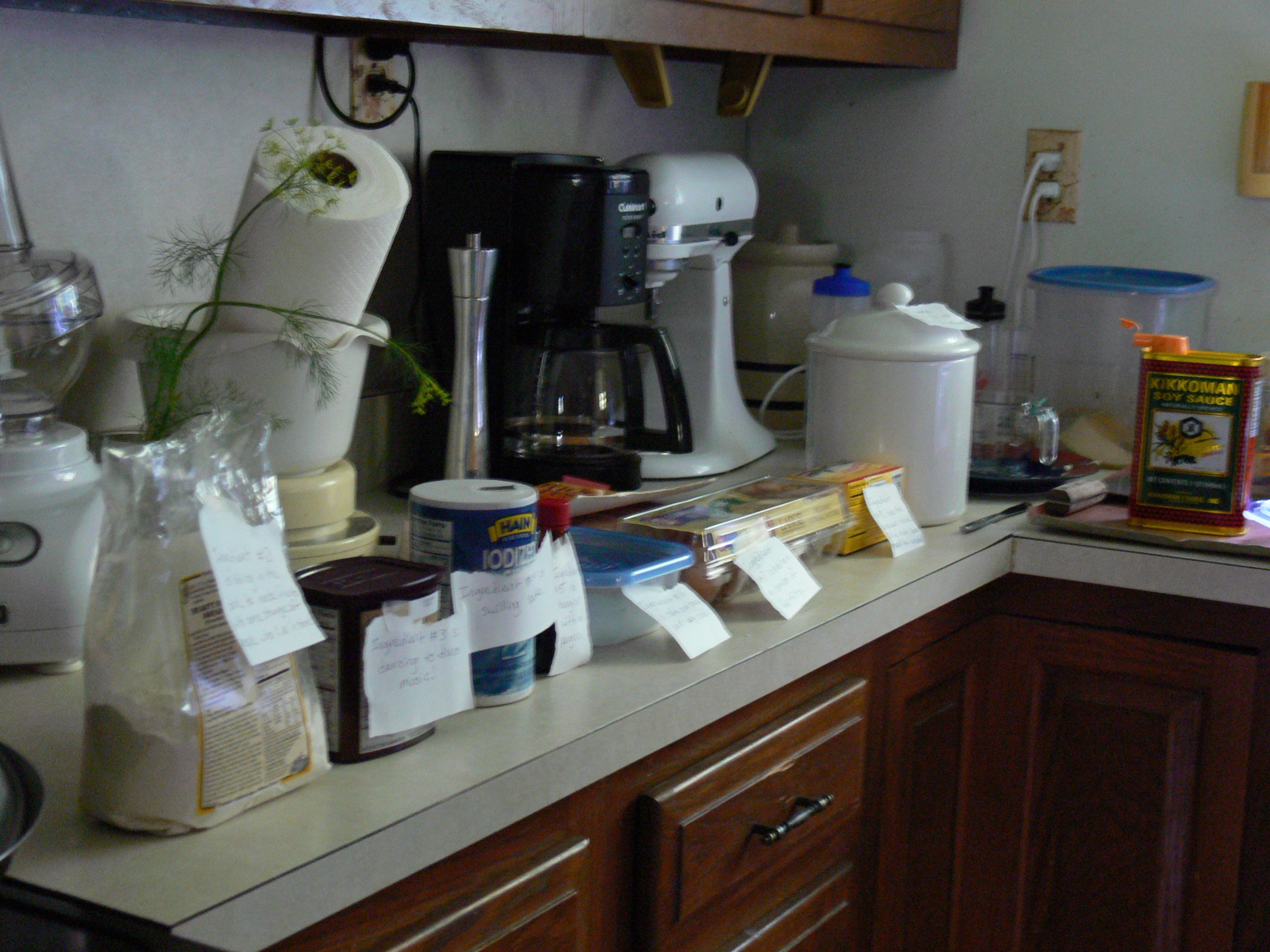 It turns out I overestimated my mother's ability to notice unusual things in her environment. It took several minutes for her to notice the dishes in the sink, and after that she put the cookbook away without seeing the note. I had to get it back out and show it to her in the interests of moving the game along.