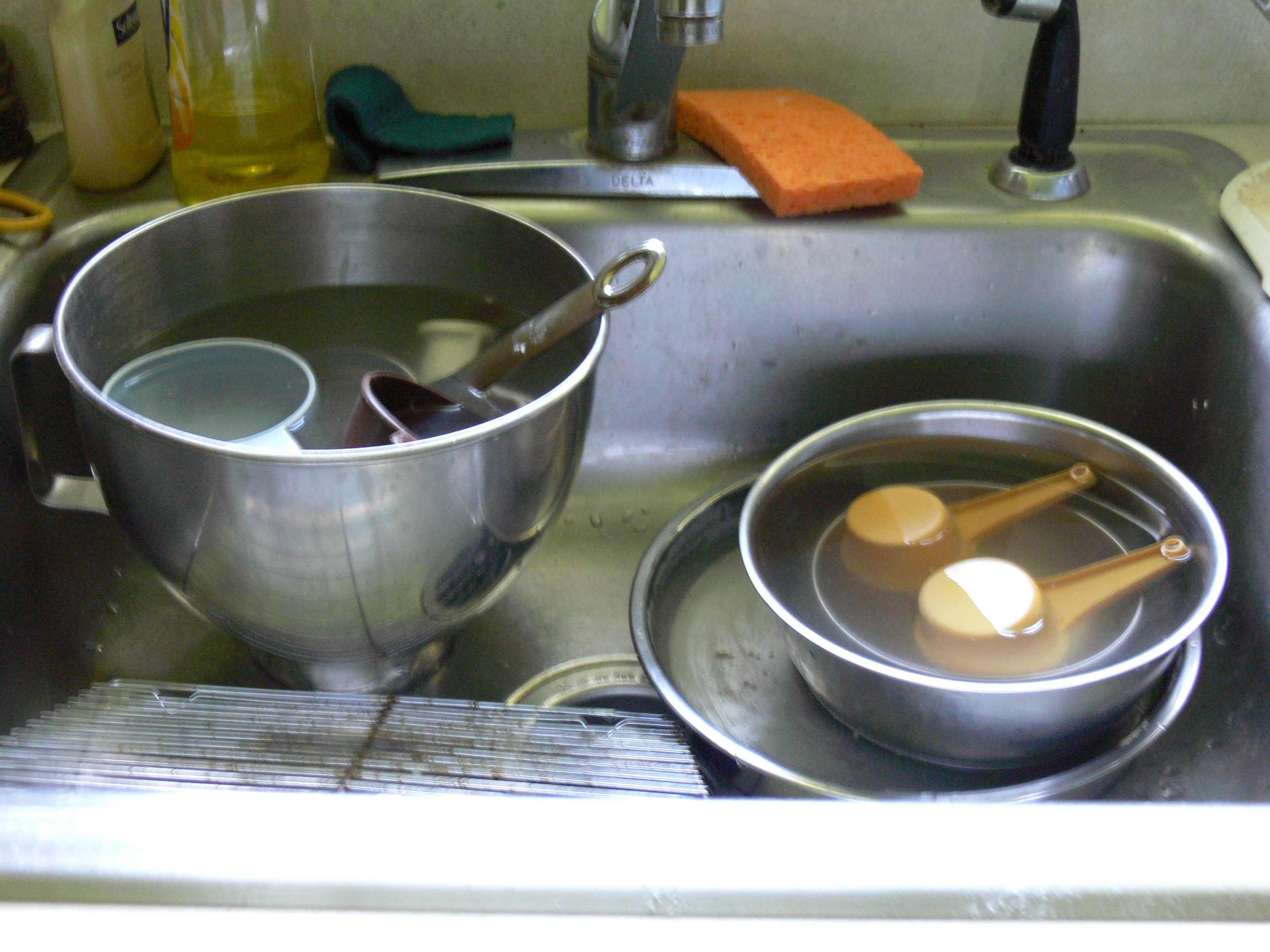 While it baked, the real work began. I had to make some clues. At this point, all I knew was that the dirty dishes in the sink would be the first clue.