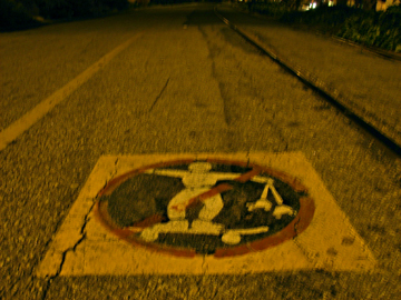 This is on the ground right out side The Boardwalk in Santa Cruz. (you might remember it from Lost Boys) there are also three other NO painted there that make total since. this one is a little convoluted