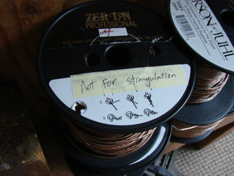 Tea cup: Choking Hazard- Note pad: I give paper cuts- Fishing Line: Strangulation Hazard- Fusion 4000: Suffocation Danger!