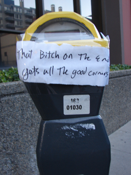 Over the course of the last month or so I asked people "What would a parking meter think introspectively or existentially?" I got enough good ones to fill a block.
