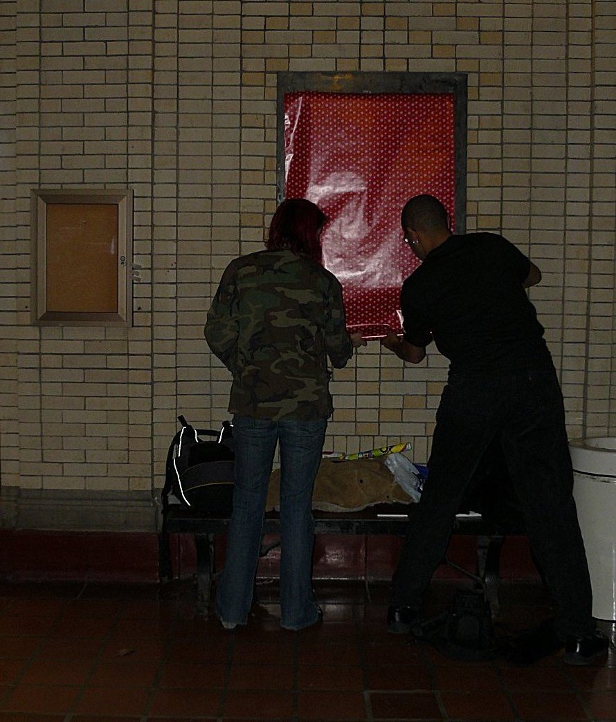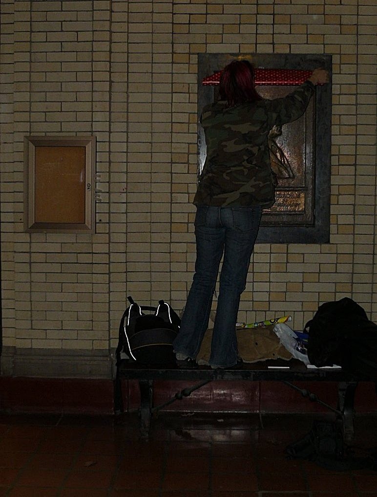 It's still still up, and it looks like people have been reading the card. (The crease is not nearly as tight as it had been.)