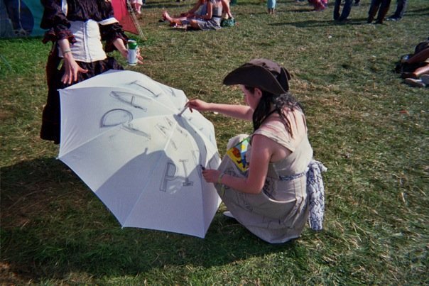I would turn myself into a colouring in page as my costume and get people at the festival to paint me!