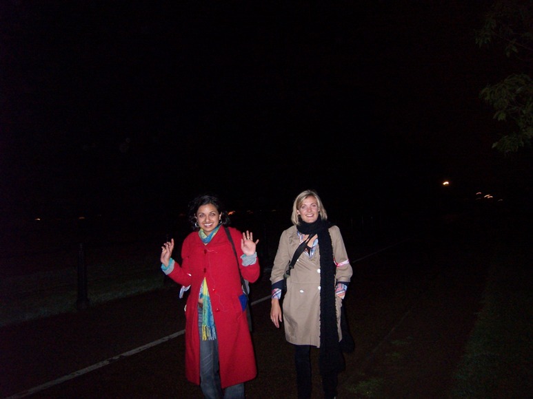 All four of us made ourselves scarce and caught a bus to the 4th checkpoint, leaving Mr Wallis, a suited gentleman chaser to keep an eye on the horde at the 3rd and to thin out their ranks a little. Yet more phone calls on the bus, a speedy team had managed to reach the end and it was still early night. We got out at Hyde Park Corner and made our way through the park aiming to place ourselves between the 4th and 5th locations which were very close together (The 4th was a ringing red phone box out the back of the royal albert hall) before moving towards the 4th. Along the way in dark we spotted several shadows lurching suspiciously. Aha! Players! … aha, cruisers. Time to move onwards we think. We made it to the back of the royal albert and spied the phone booth in the distance. The film crew that were running a documentary of the entire festival were crouched down next to one of our original chasers, she had a new girl in tow and they were working as a pair waiting in ambush on the staircase leading from the phone booth to the 5th check point, the Russians by the lake in Hyde Park.