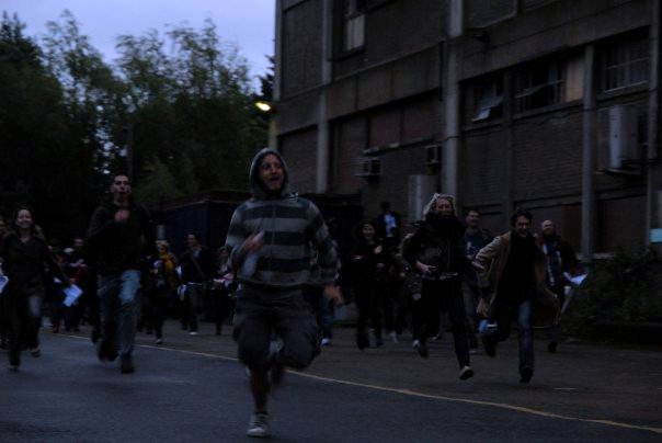 Unfortunately the weather had decided to be British, it had started to rain heavily. We lost many players because of it, but just over 80 courageous souls turned up ready to play the fox to our hounds. A few brief photographs round the back of our trusty white vans (later to play a massive role in ferrying chasers/scaring players with megaphones etc) and we headed out to find suitable locations.