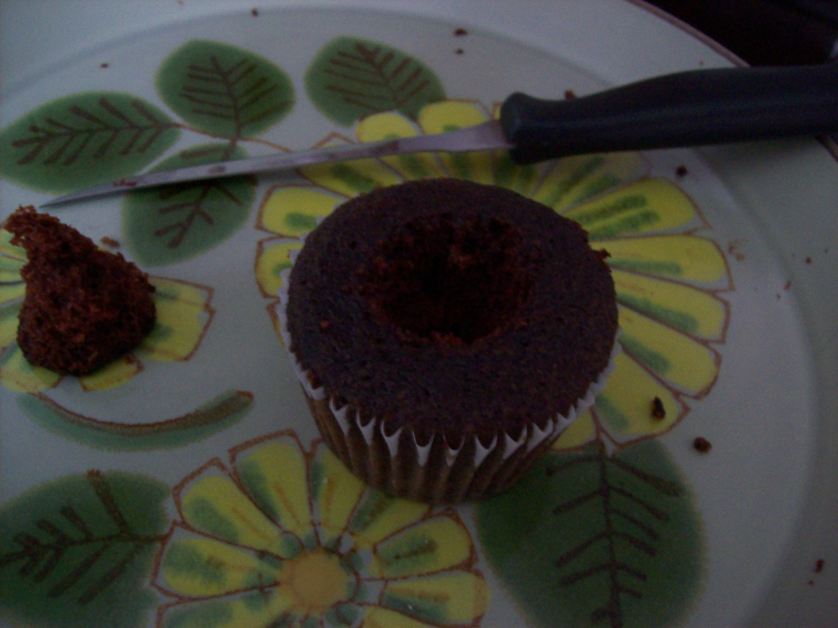 I made replicas of the filled chocolate cupcakes, using all-natural ingredients and making everything by hand. I make cupcakes fairly often, but this was the first time I ever filled a cupcake.
