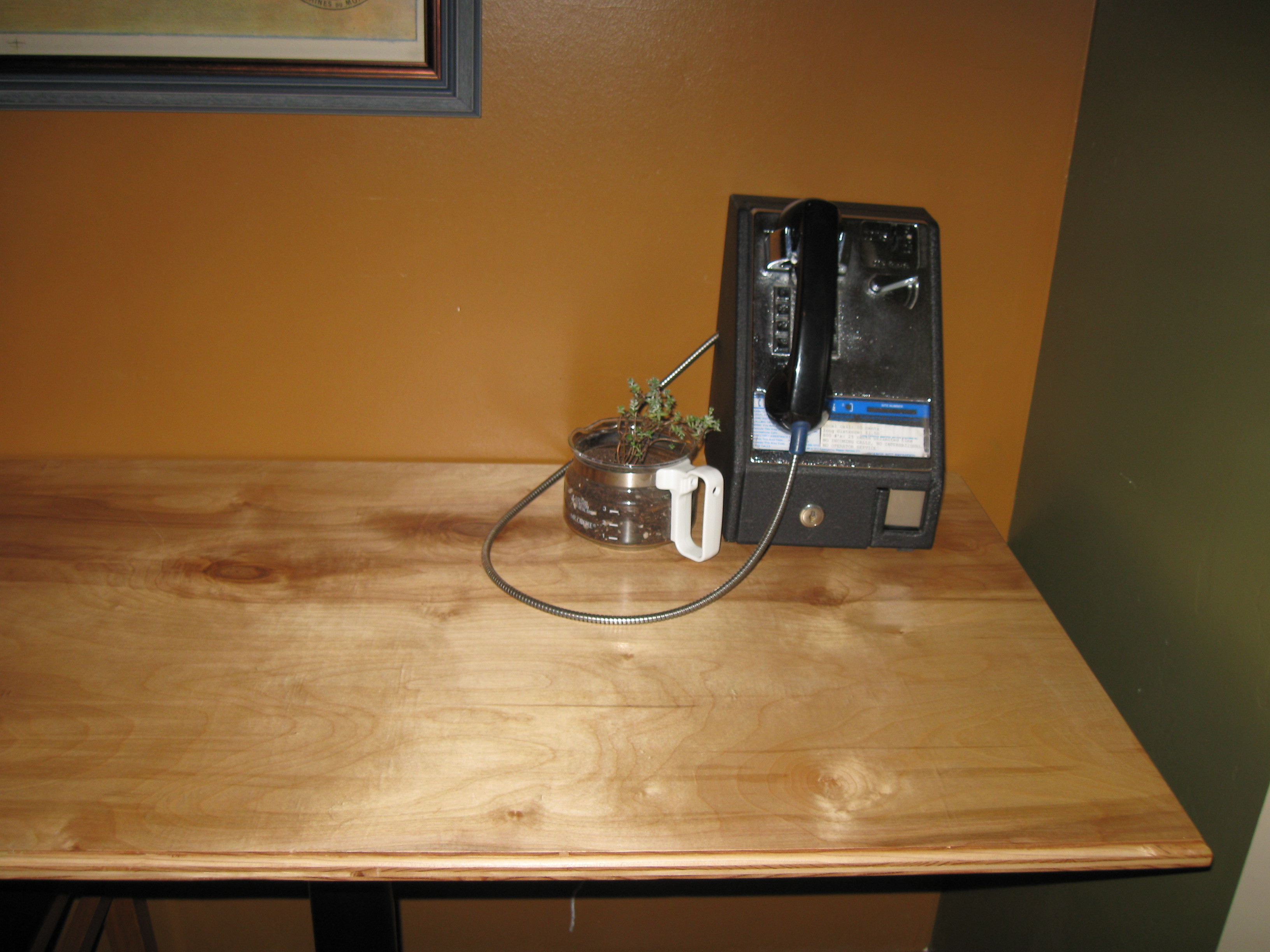 Murdoc Steathily placed the plant while I distracted the barista with my need for chai. She chose a lovely spot next to an oddly placed pay phone.