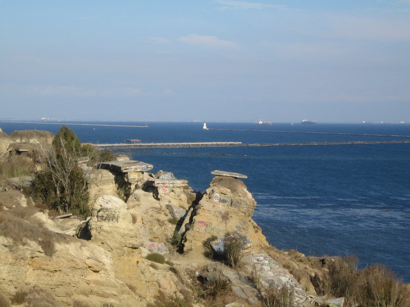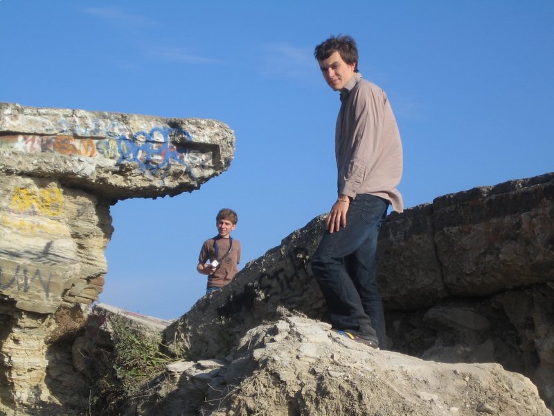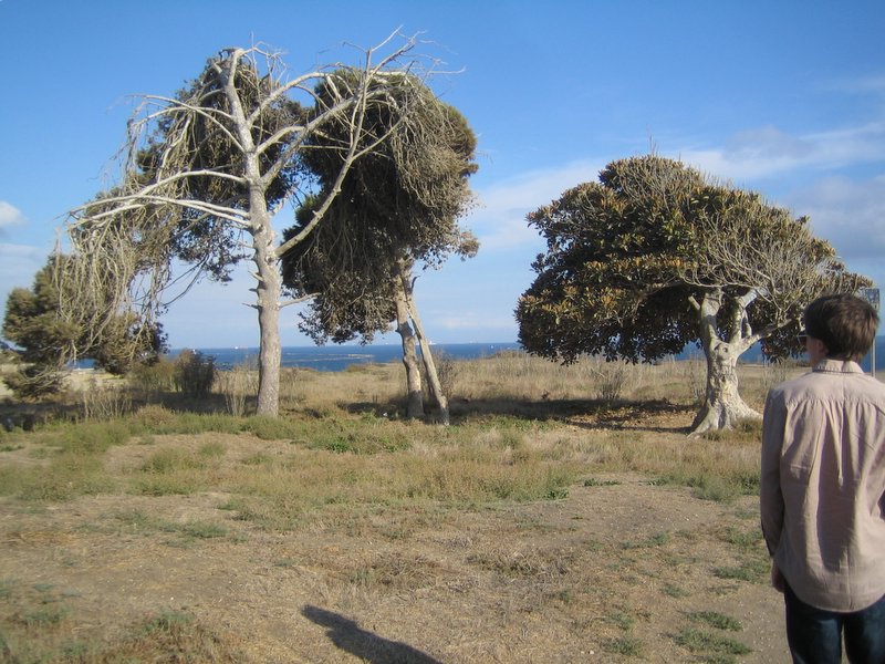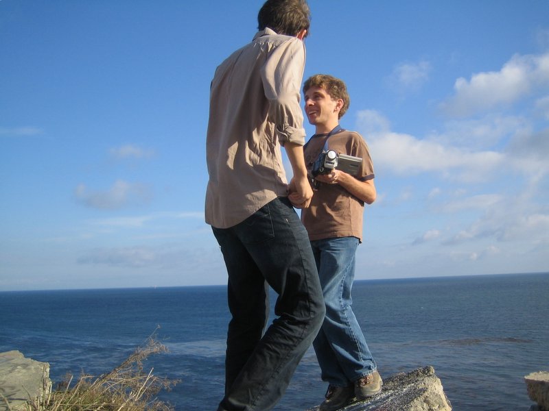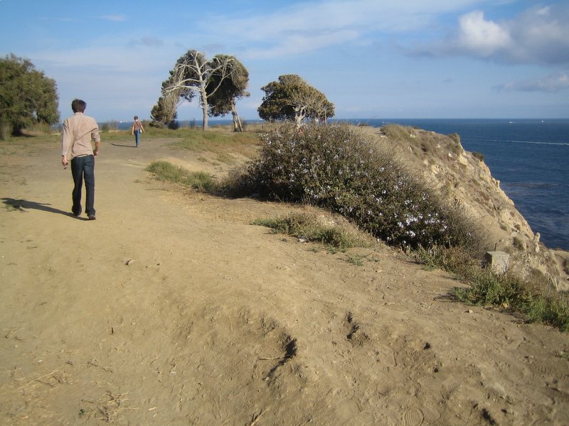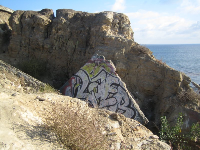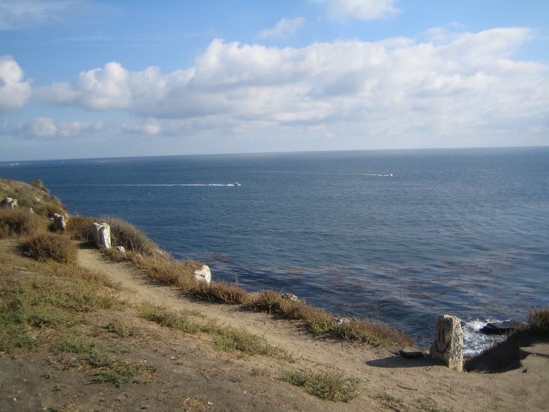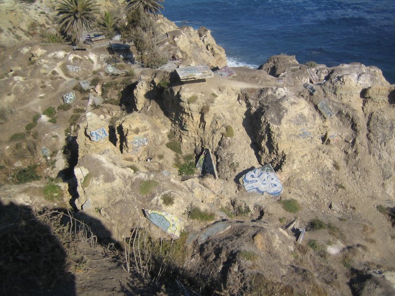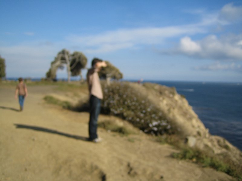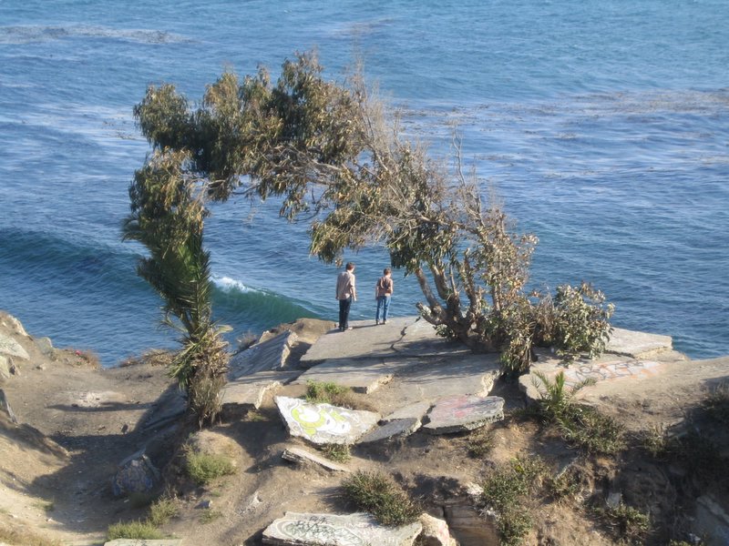 About three weeks ago, during my trip to Irvine, Joe drove Yoshi and me to the crumbling L.A. surburb of San Pedro. In the 1920s, sections of this coastal town began to fall into the sea at a rate of almost a foot a day. The affected area is blocked off by a fence, but Joe, Yoshi, and I slipped through an opening and found ourselves in an otherworld of modern ruins. The ocean ate voraciously, and what's left now looks like the aftermath of some sort of failed geological experiment. Huge flat slabs of concrete sit atop decaying earth at odd angles and random trees spring up in the recesses of the cracked and shifted sidewalks. Broken bottles and graffiti cover a lot of surfaces, but that somehow added the beauty of what we saw that day. It was incredibly clear and quiet, the ocean was as blue as I've ever seen it, and I felt like I was a citizen of the future, on a tourist's trip to the ruins of the twentieth century.