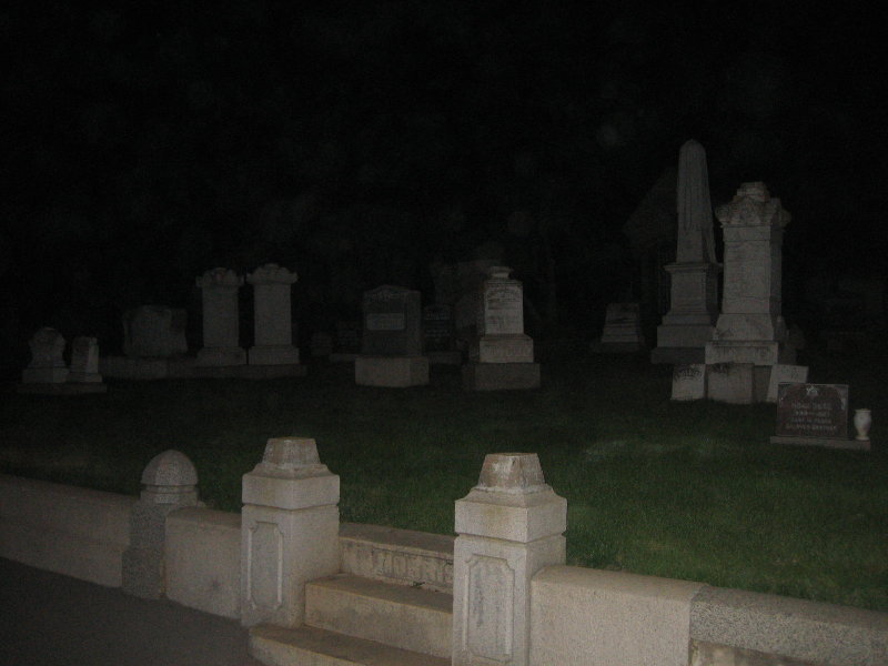 Orion: The crypt was quite frightening and the ghost stories oh, so true…but the picture snapped of a real live ghost in the first cemetery was as scary as anything. Though my notes continue to reference fear, though, I felt much more at peace than my notes imply…being outdoors at night in such a quiet, charged place is really my favorite way to spend an evening.