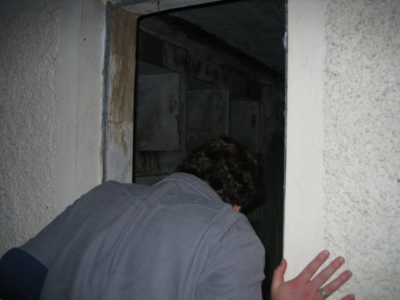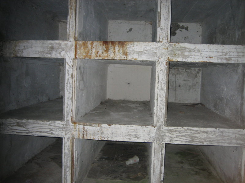 This crypt appeared...empty...and had no glass or bars over the windows. Would make for quite a frightening Urban Exploration adventure.