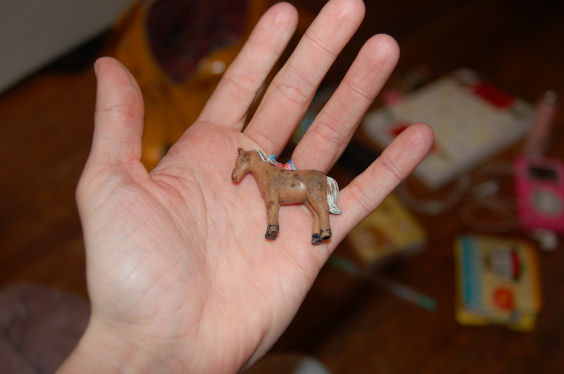 _and one beat up little plastic horse. he has a painted white mane. mario found him, and brought him to me.