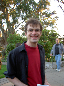 Matre K and I (Mr. and Mrs. Smith) were volunteers at the first checkpoint, at Coit Tower. Not surprisingly, it was windy and chilly and there was no parking in the lot, but we managed to offload our important site equipment specifically designed for the runner's rejuvenation and refreshment. Matre K dragged everything up the stairs while I parked, a fair trade-off. We received top-secret wireless transmissions concerning instructions for the runners utilizing state-of- the-art cellular® telephone technology. I also received a cellular transmission from a random runner asking me questions for which I had no answer. Tension built. The city was beautiful in the gathering twilight. Finally. Rob was the first to appear, sweaty and breathing hard after the run up the stairs. It was fully ten minutes before anyone else showed up, which is doubly amazing since apparently Rob had been chased through Embarcadero One before resuming the race. Smaller groups began arriving in discreet and manageable intervals, until we were suddenly hit by a massive number of enthusiastic runners and chasers. What followed was a chaotic fire-drill to refill coke and water cups, sign manifests, make sure everyone got instructions for the next checkpoint, and take pictures of all the participants. I'm sure I missed some of you, but the intent was there. It was fun seeing some familiar faces, as well as some new ones: Kudos to Edward...a 'walk-on' in his first sfzero task! As always, Matre K and I enjoyed being pulled out of our mundane existence to experience the excitement of the race from the relative comfort of our folding chairs. Congratulations to all, including the sf0 guys who made it all possible.