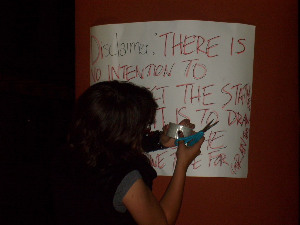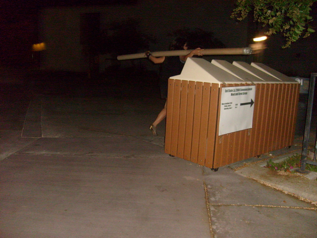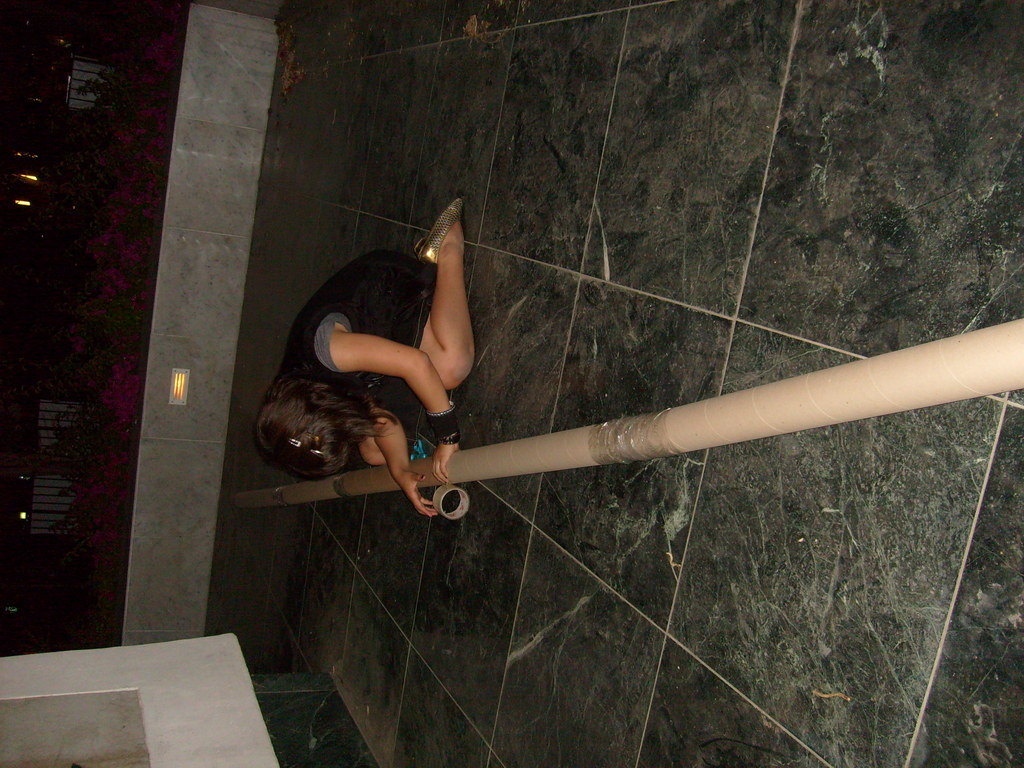 The best part of this entire experience was probably that it was done very late at night, it was done by 2 women who are approximately 5 ft each, we encountered many frat boys (of which I was friends with at least two, this knowledge provided SOME relief), and were were armed with large engineering tubes, pepper spray, scissors, keys, a kitchen knife (used for sandwiches), and massive amounts of duct tape.
