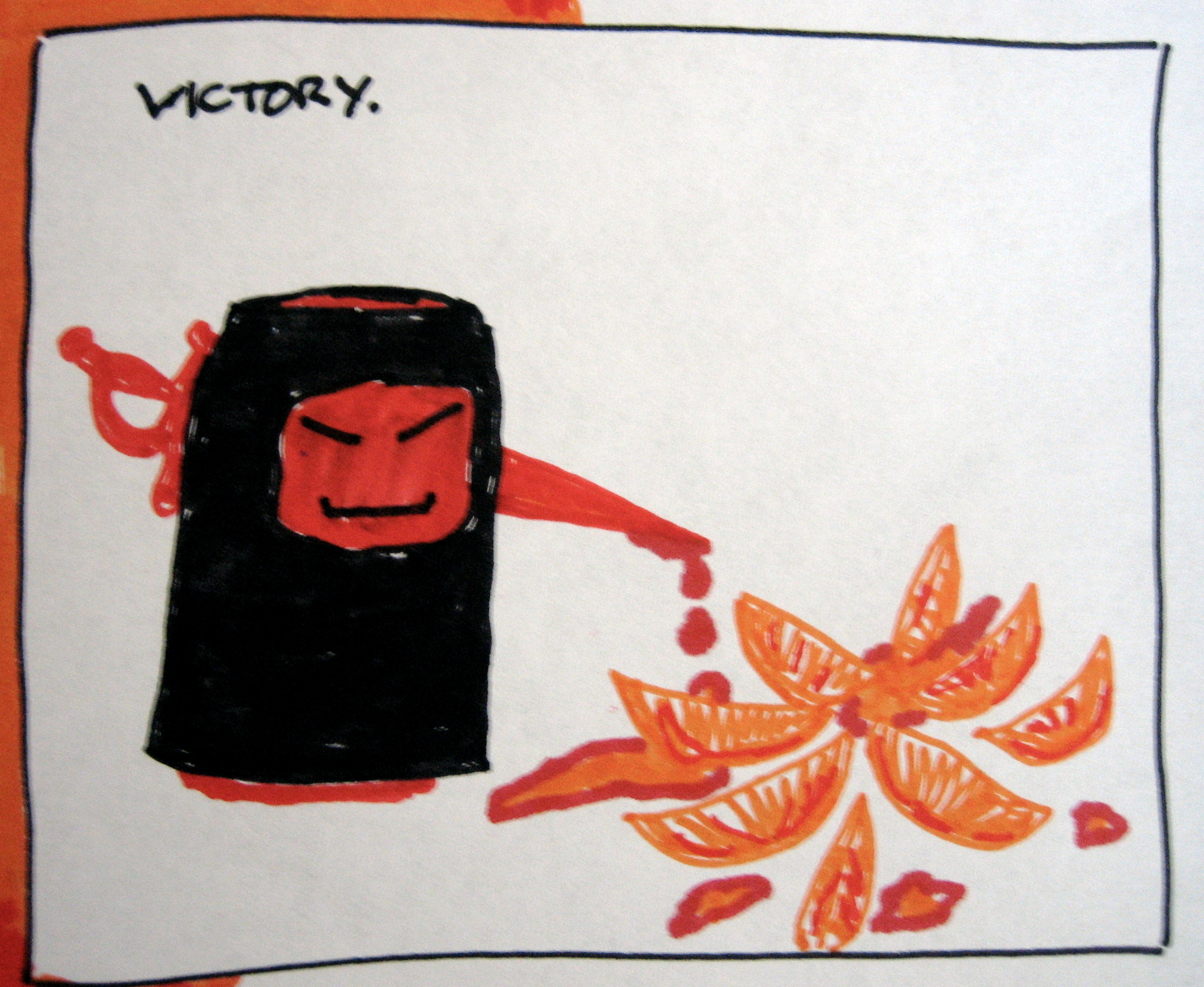 Oh. I like oranges. I don't know how I feel about the senseless slaughter of unarmed citrus.