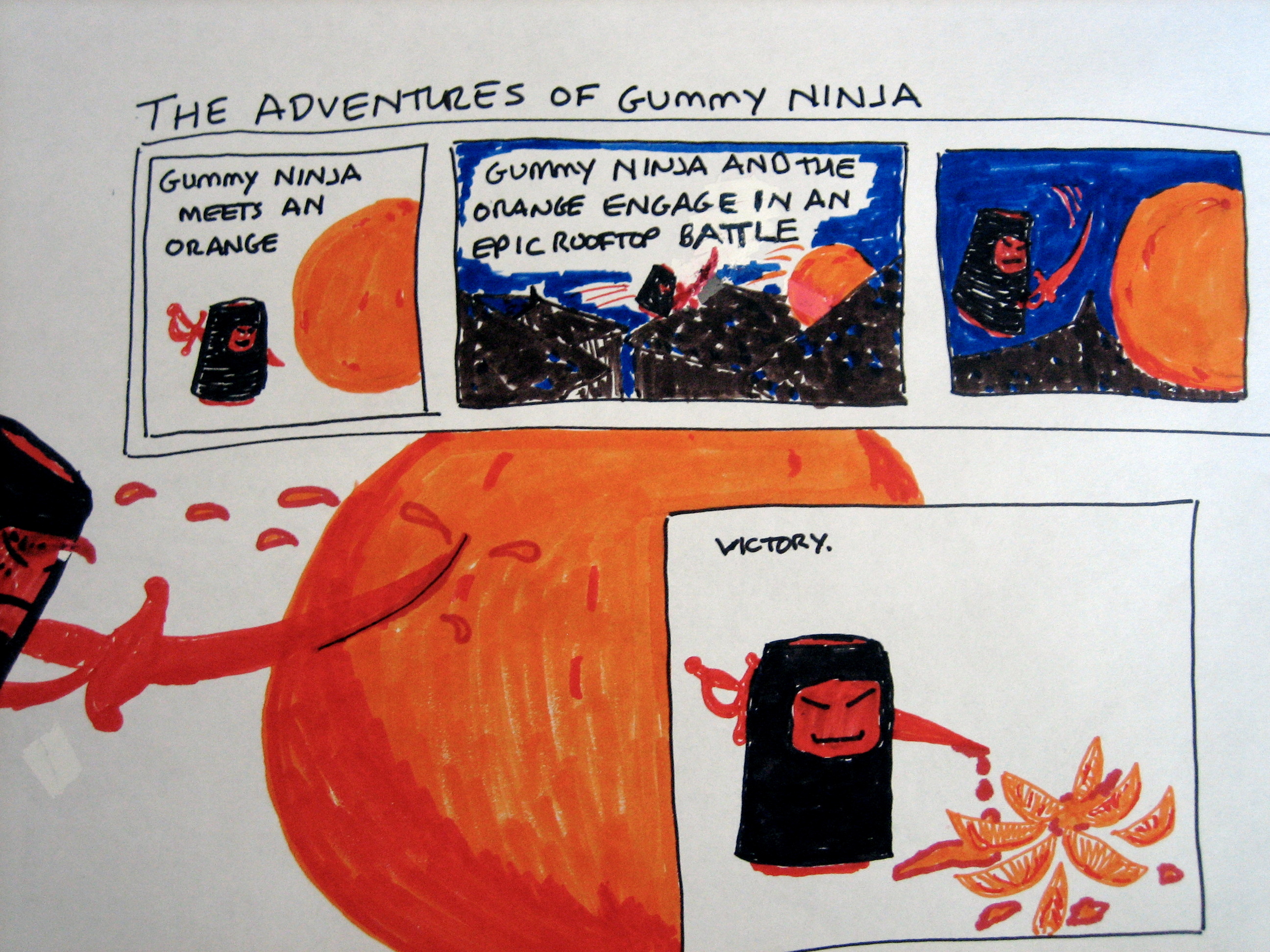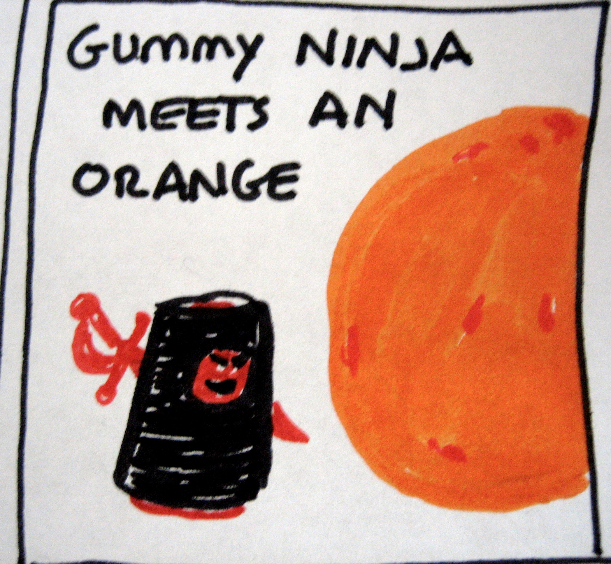 I was inspired to go further and create a little comic strip for Ninja Gummy. Without further ado, I present to you, The Adventures of Gummy Ninja: