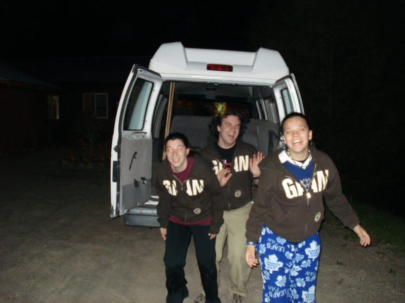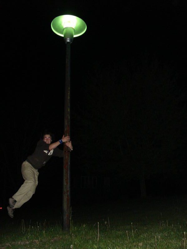 Next, we went outside, exploring our site. I myself used a narniaesque pole, while B. Jacks merely used her body to create the awesome, and MissJackson rolled down a hill, coming dangerously close to gravel that would have been less than fun. For our 3-person, we burst out of the camp van!