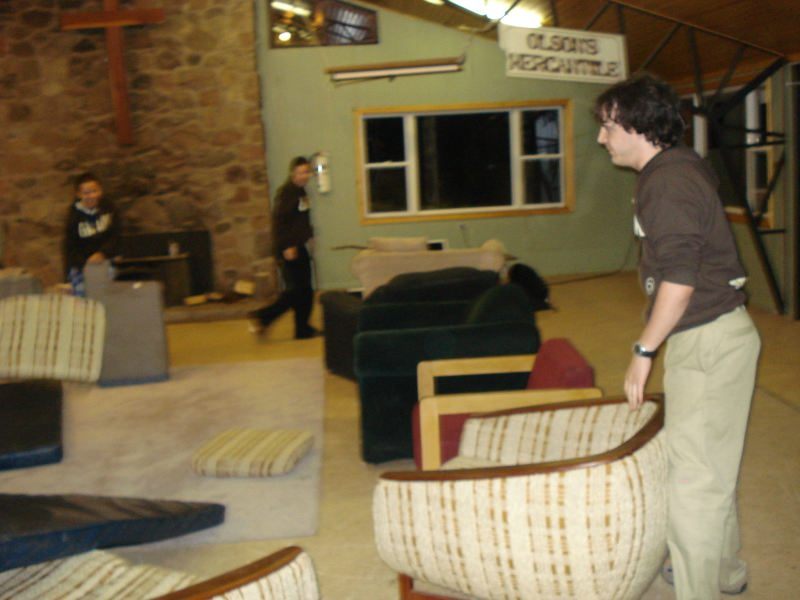 The first, being the indoor, we took out a bunch of couches, loveseats and comfy chairs and scattered them around our dining hall. We did a few individual, and then one all-together!