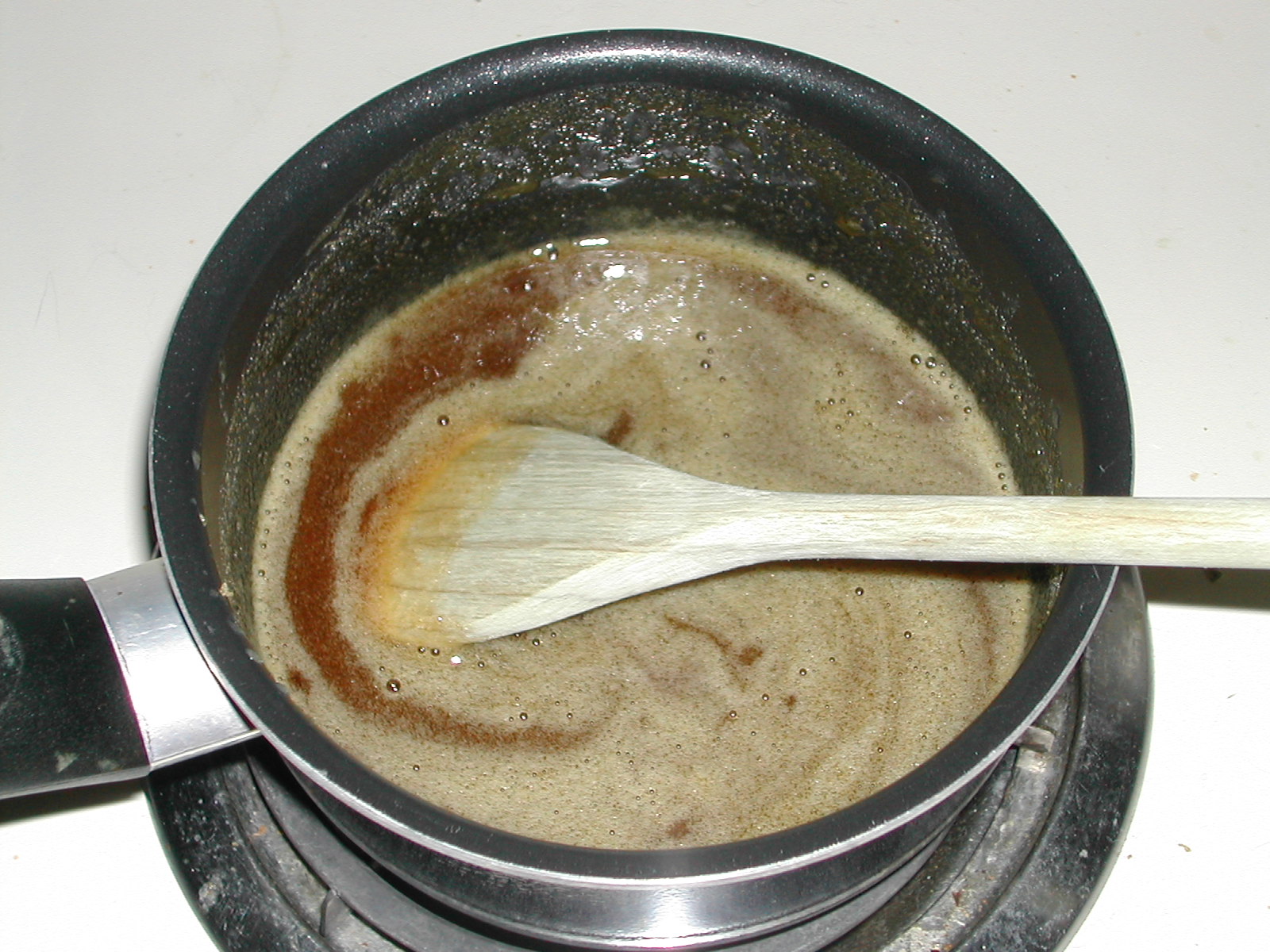 The honey and brown sugar mixture after I dumped in the peanut butter.