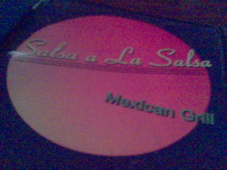 After the film, we wandered up to Nicollet, at which point the subject of food or "eatings" came up. Mexican was decided upon, and thus I devised a clever plan! Since they were so kind to provide some snacks for the movie, and since they're both awesome people, I would buy them each an awesome burrito. I encouraged both of them to consider ordering burritos. Manda mentioned the place we were going to, Salsa a la Salsa, had some awesome mole sauce for their burritos, so we were golden.