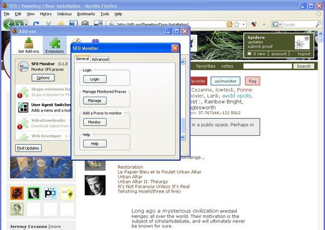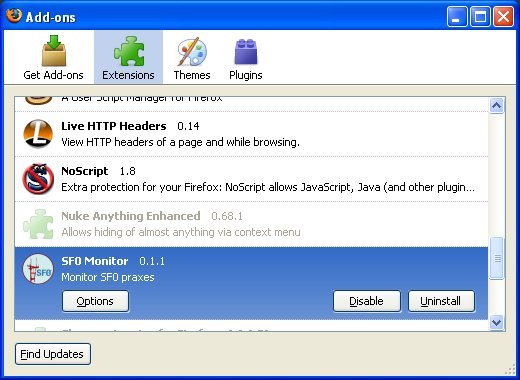 All right -- for some reason the auto-updating isn't working, and I haven't put in any skinning yet, but there's a working version at http://spidere.com/sf0plugin/sf0monitor.xpi :) Enjoy.