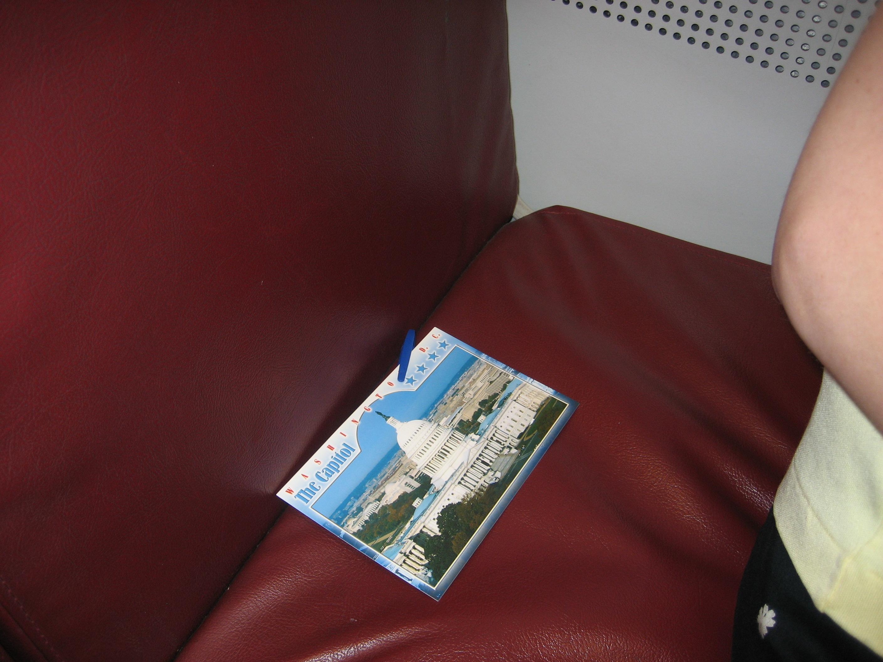 The Capitol Garden postcard, left on a green line metro train. We saw a guy pick it up and look at it, but he'd seen us leave it there, and the fact that we kept staring at him didn't seem to help. in fact, I think Spidere may have creeped him out a little. Someone else must have eventually picked it up, though, because we got this one back!