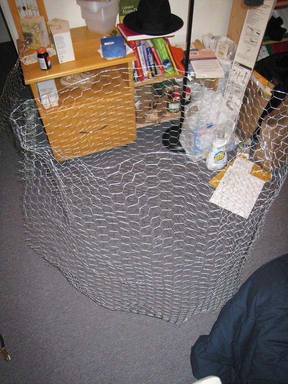 After trying to work with it for a while, i realized that chicken wire was actually pretty resistant to being shaped, and would also be nigh-impossible to break through. Ah, well--persevere! For drive!