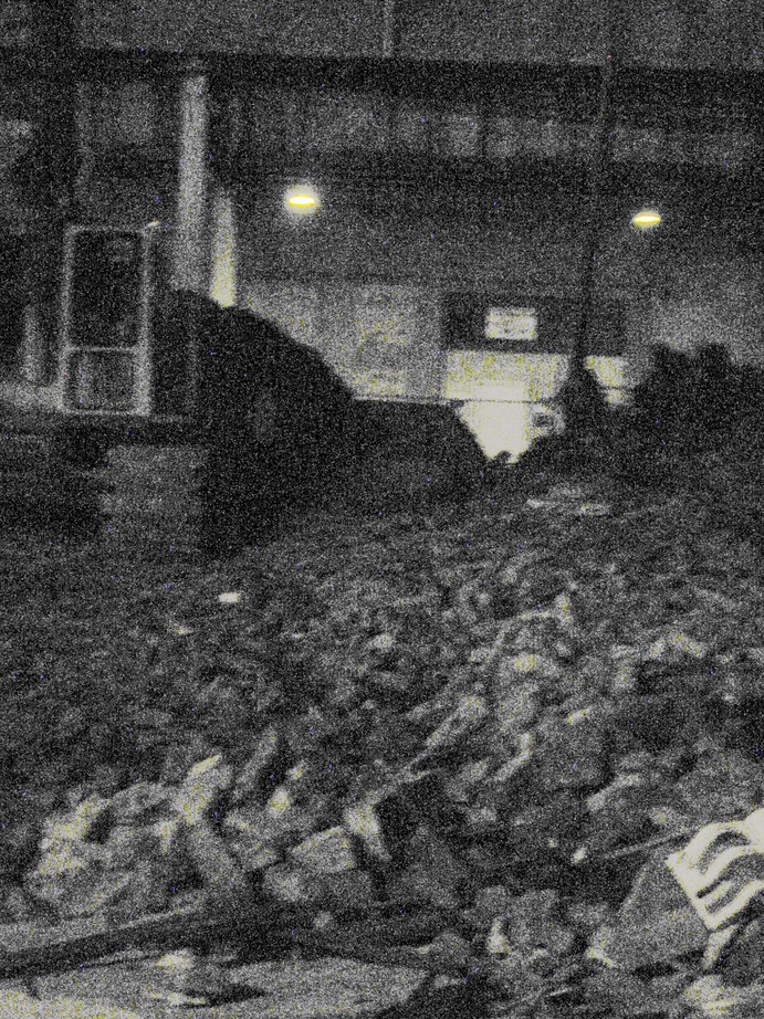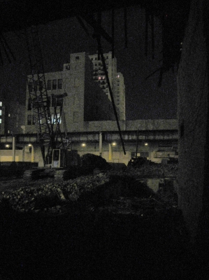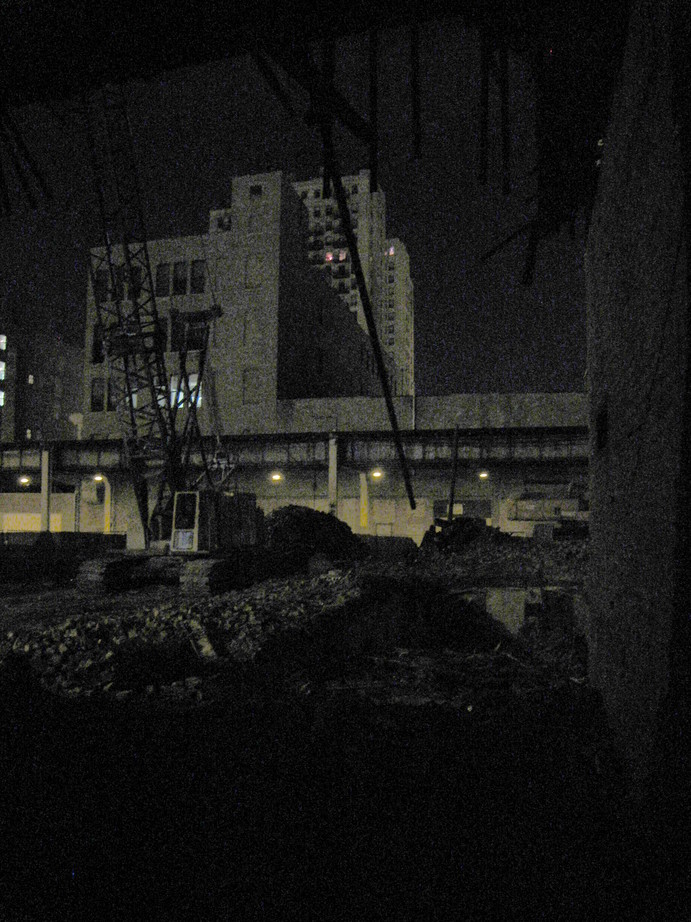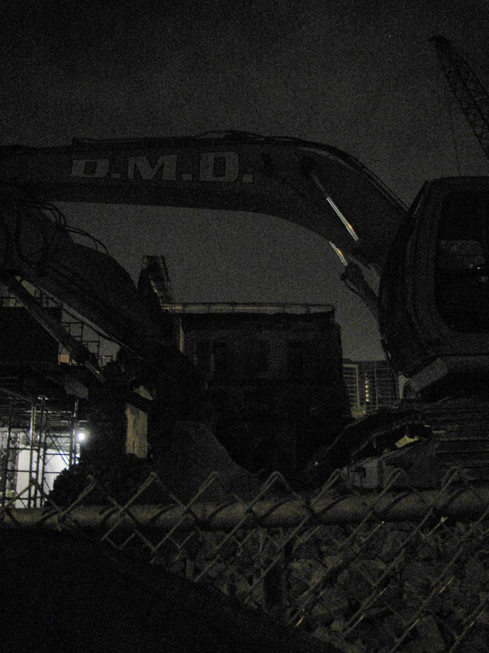 And as the evening progressed, we found ourselves walking through the city. Guided initially by a desire for some food, and later by the hand of fate, we came across a building in the process of being demolished.