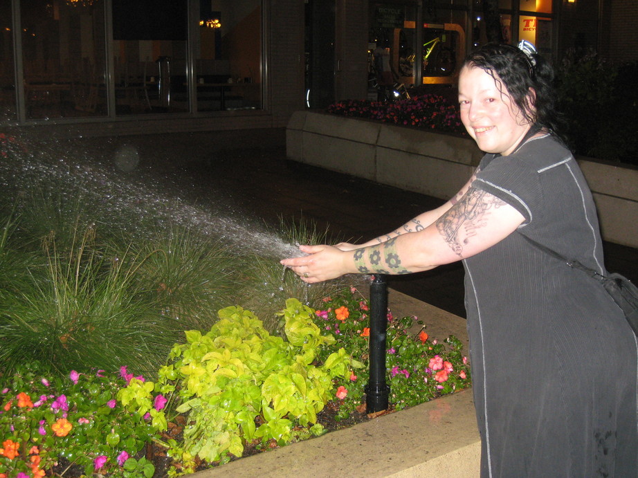 We washed our hands in a convenient sprinkler in a flower bed on the way to the train.