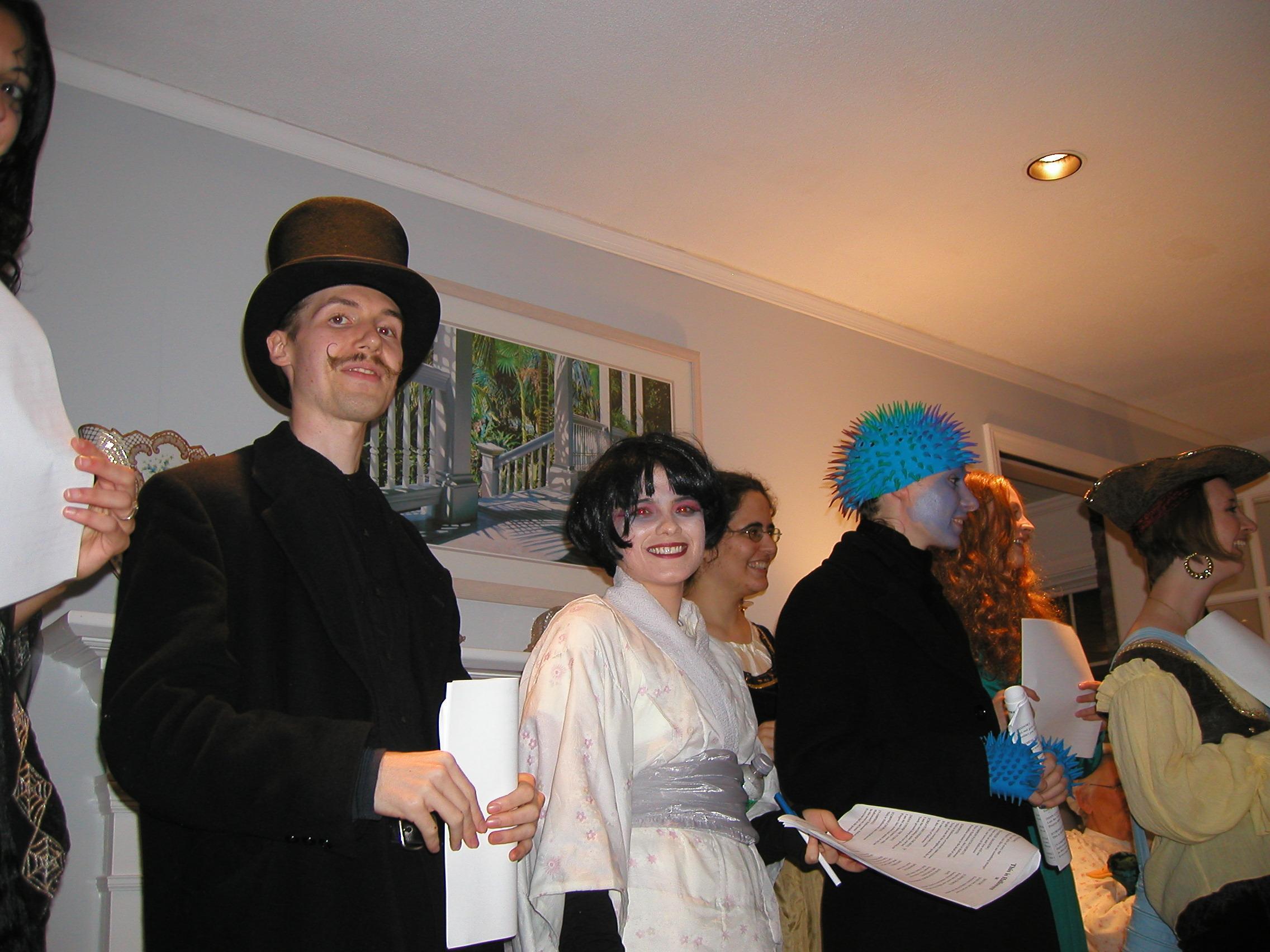 This was great fun, and I recommend it to everyone. I have to compare it to Bigger, Better, or More Bizarre to find something with the same feeling of excitement to it. Some highlights from the evening were: singing for groups of trick-or-treaters in the streets, getting a "tip" in extra candy from a little girl, and after singing the Addams Family theme, having the woman at one house speak French (with Spidere responding appropriately).