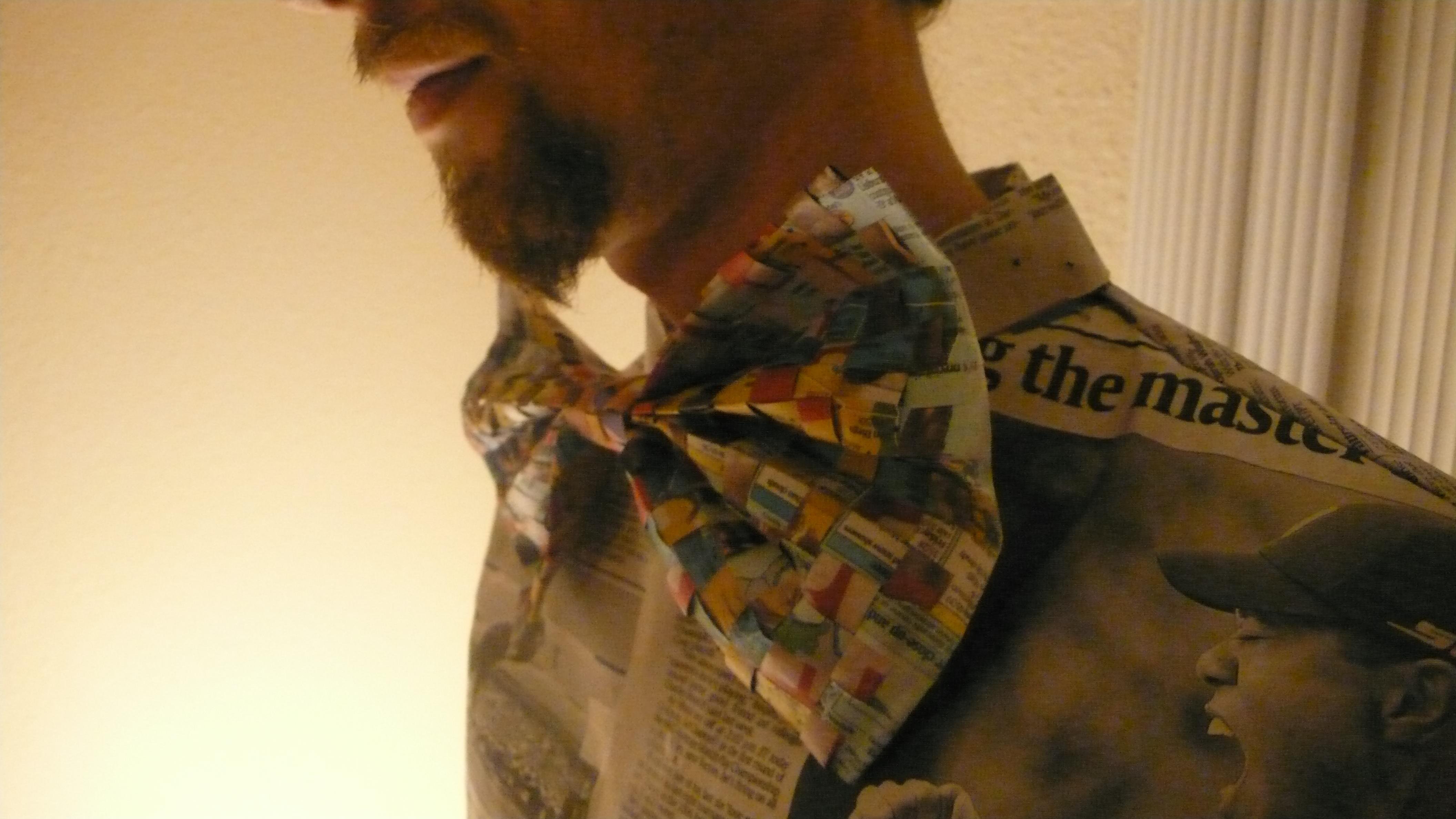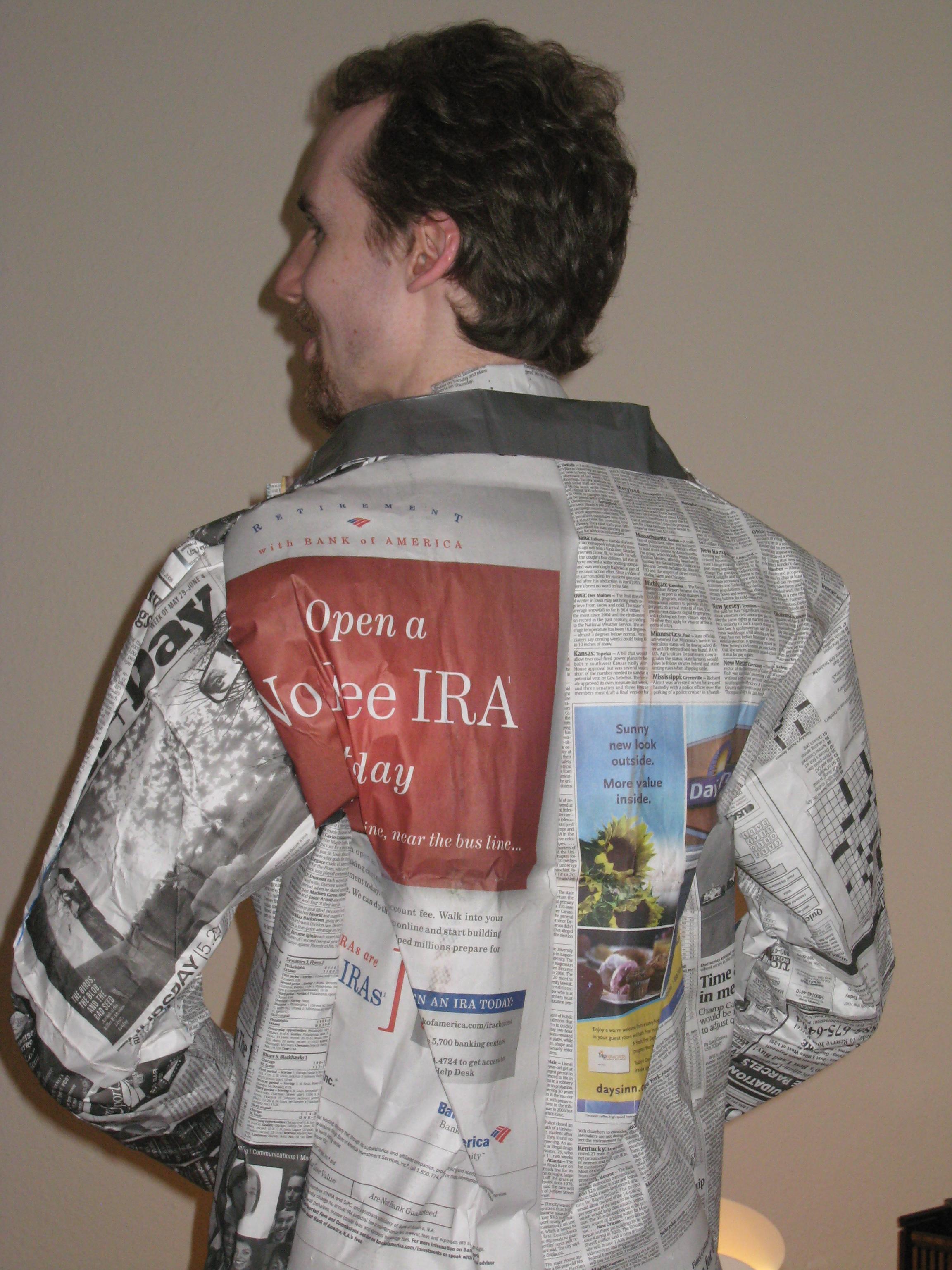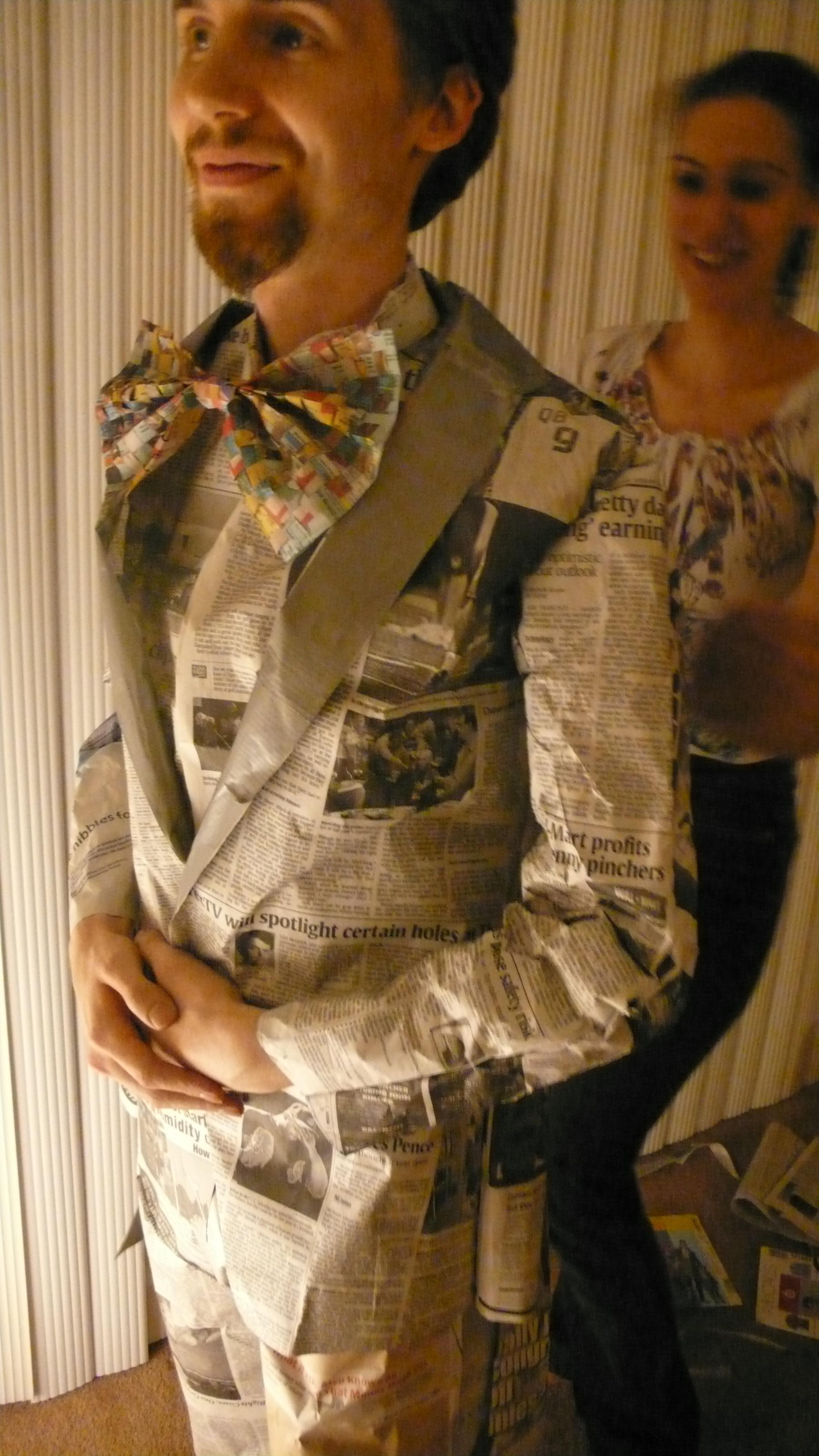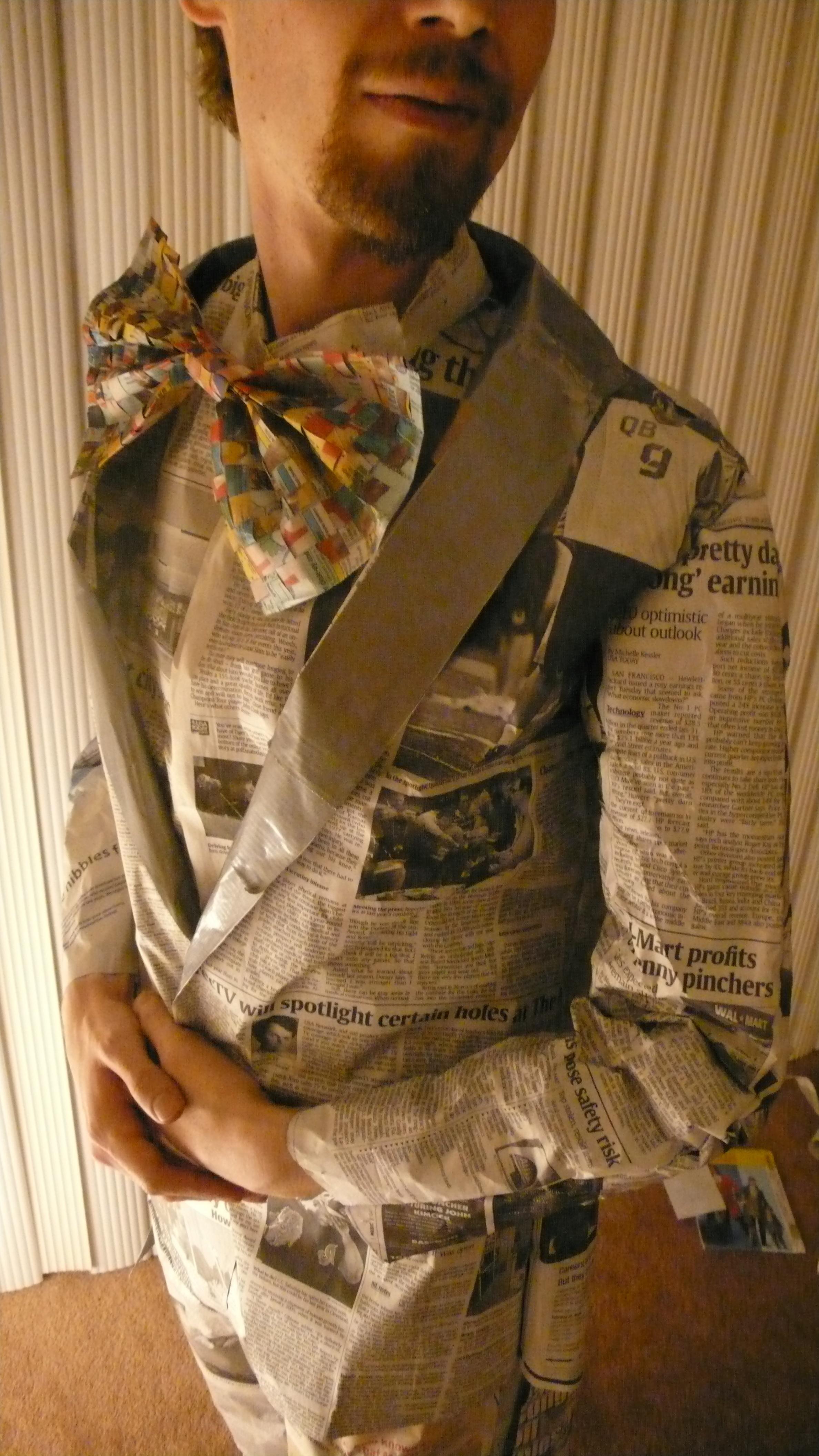 It seemed only fitting to make a match for it: a formal suit made from newspaper.
