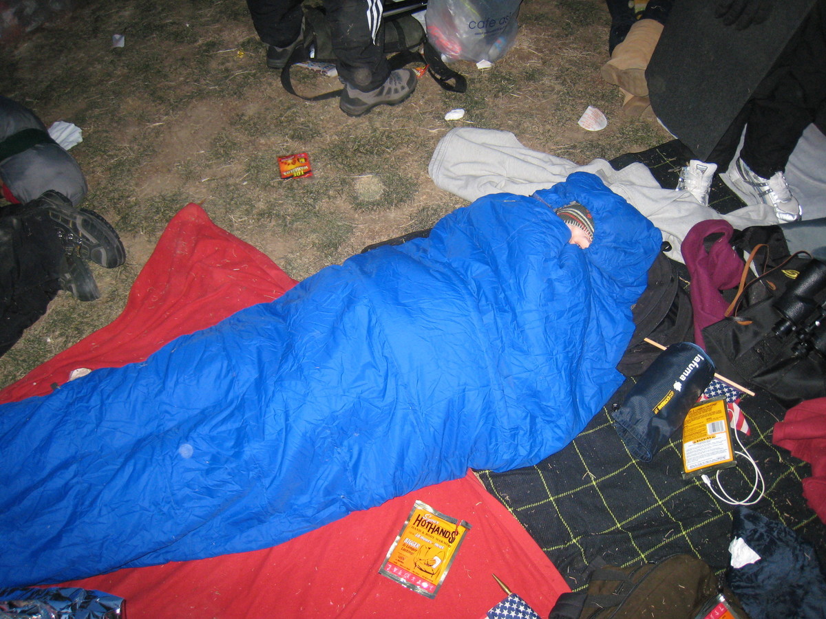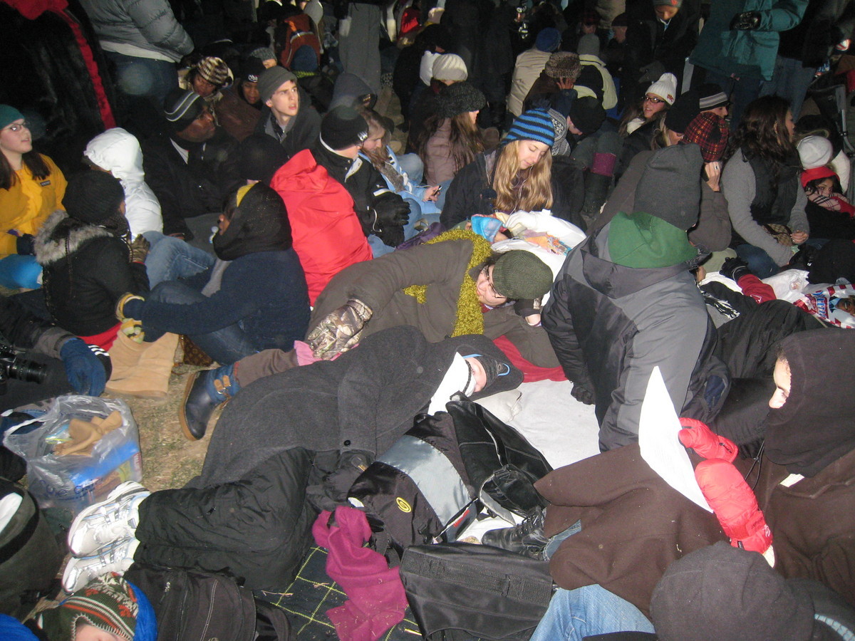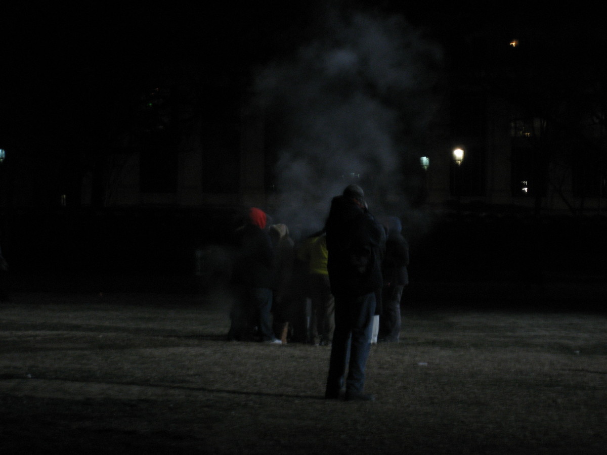 We arrived from the far end of the mall, and Kprime got this shot of some other early arrivals huddled around a steam vent.