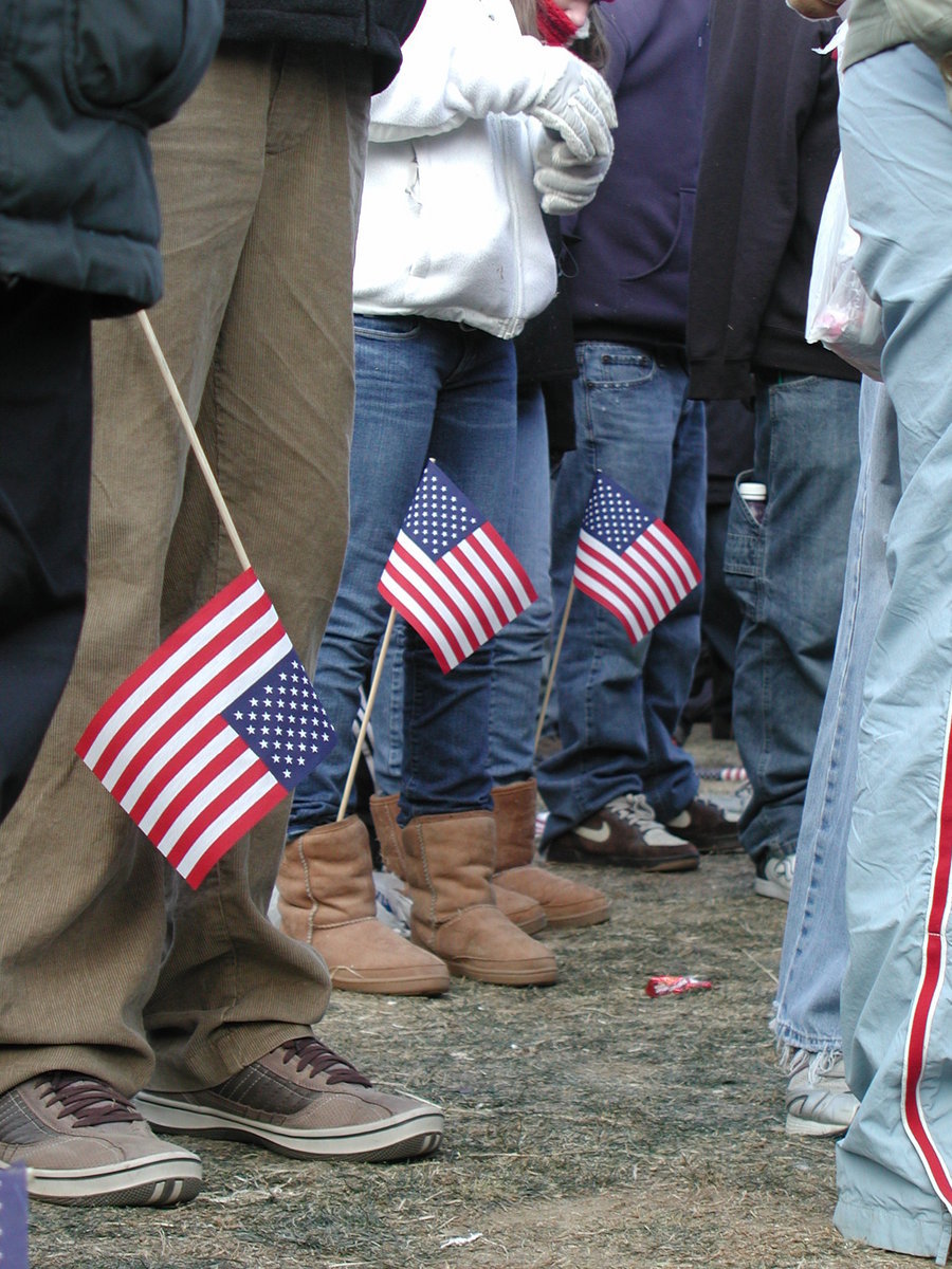 Flags were everywhere; we brought our own, but there were volunteers handing them out as well. This was a fortuitous shot by Flitworth.