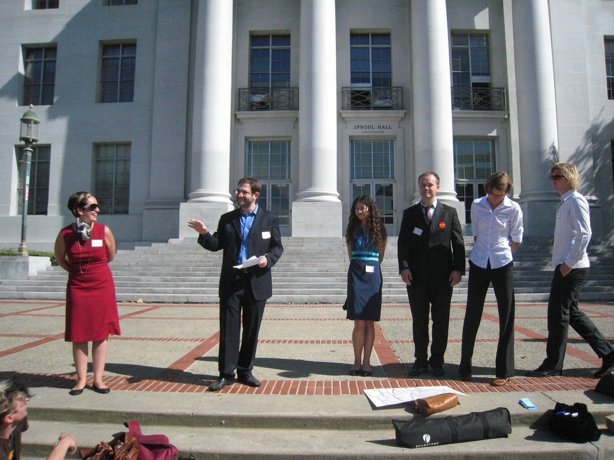 We were to gather field research to find out what was on the minds of Berkeleans. We were to tell no one of our mission. Beetle bomb and Firecracker formed one team; Spidere teamed up with a random non-player, Justin. Our tasks: